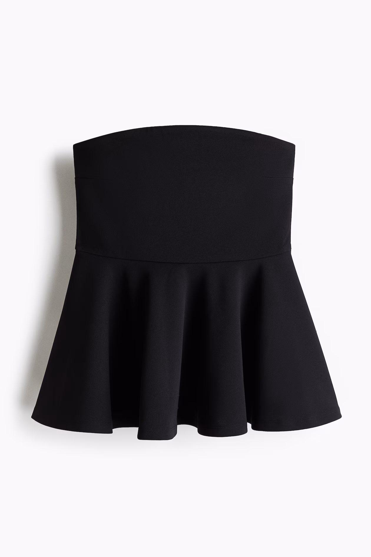 Fitted bandeau top in jersey with silicone trim inside upper edge. Flared peplum for a flattering silhouette.