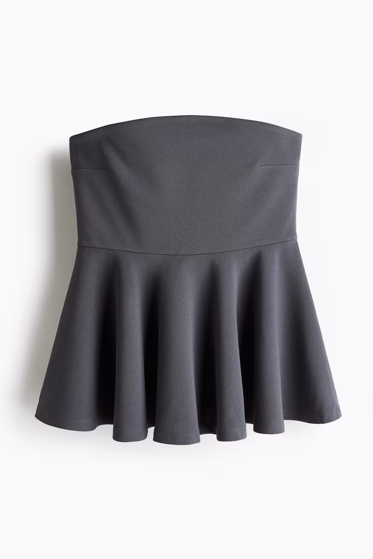 Fitted bandeau top in jersey with silicone trim inside upper edge. Flared peplum for a flattering silhouette.