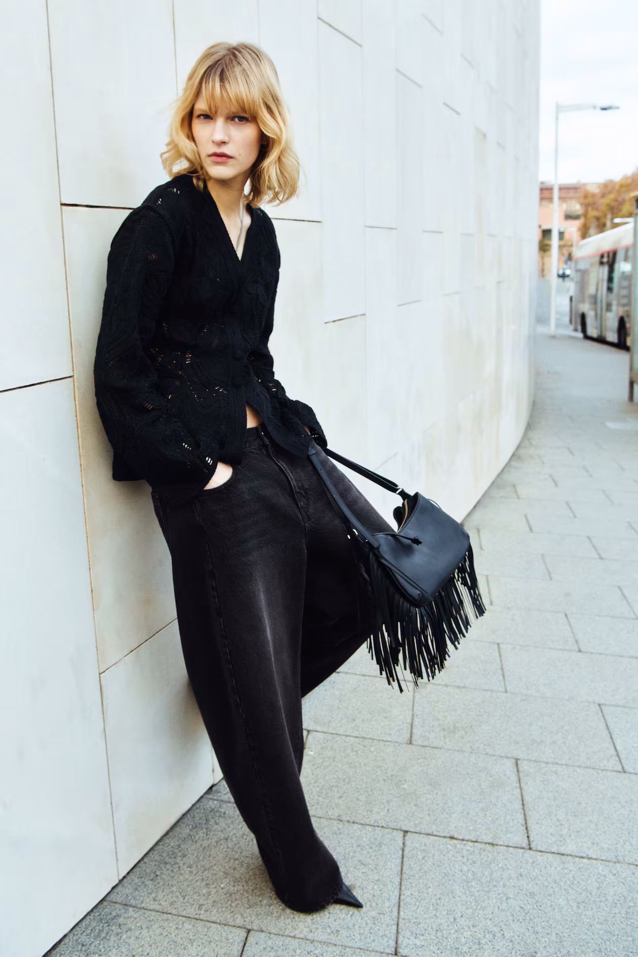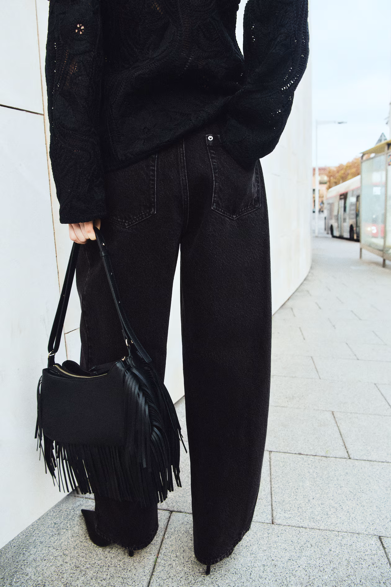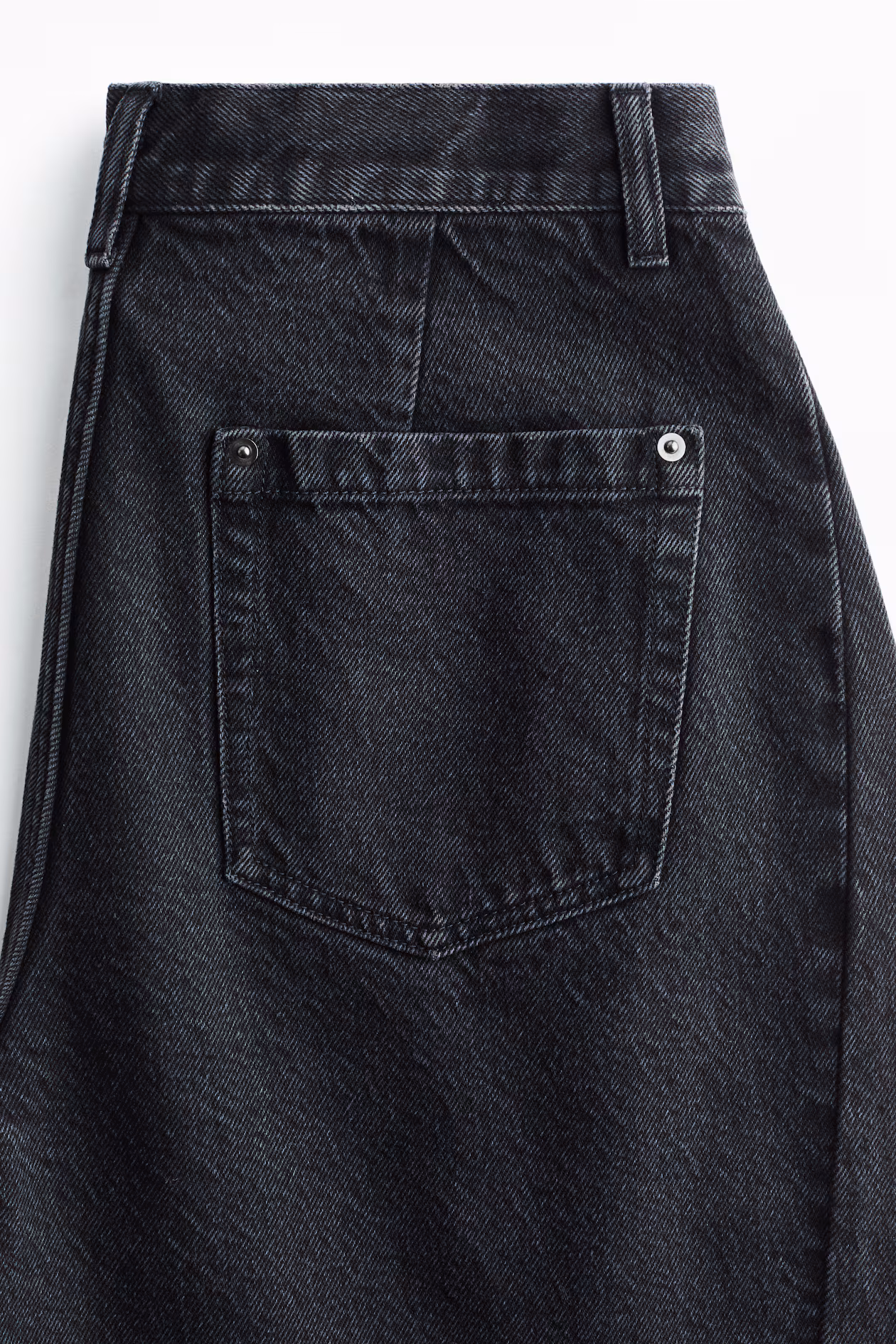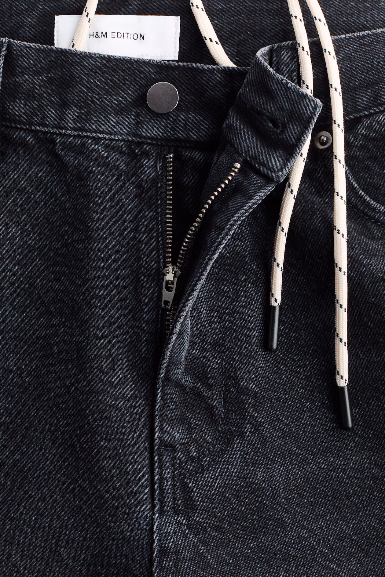 Loose-fit, 5-pocket jeans in rigid cotton denim. Regular waist, zip fly with button, and barrel legs with side panels.