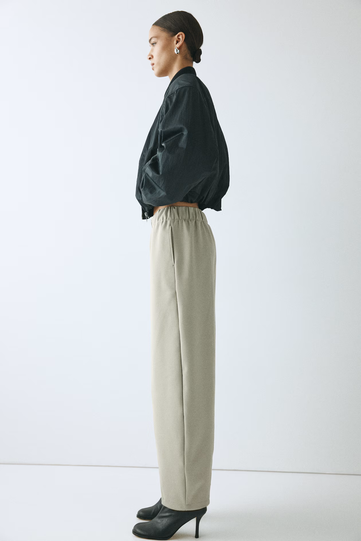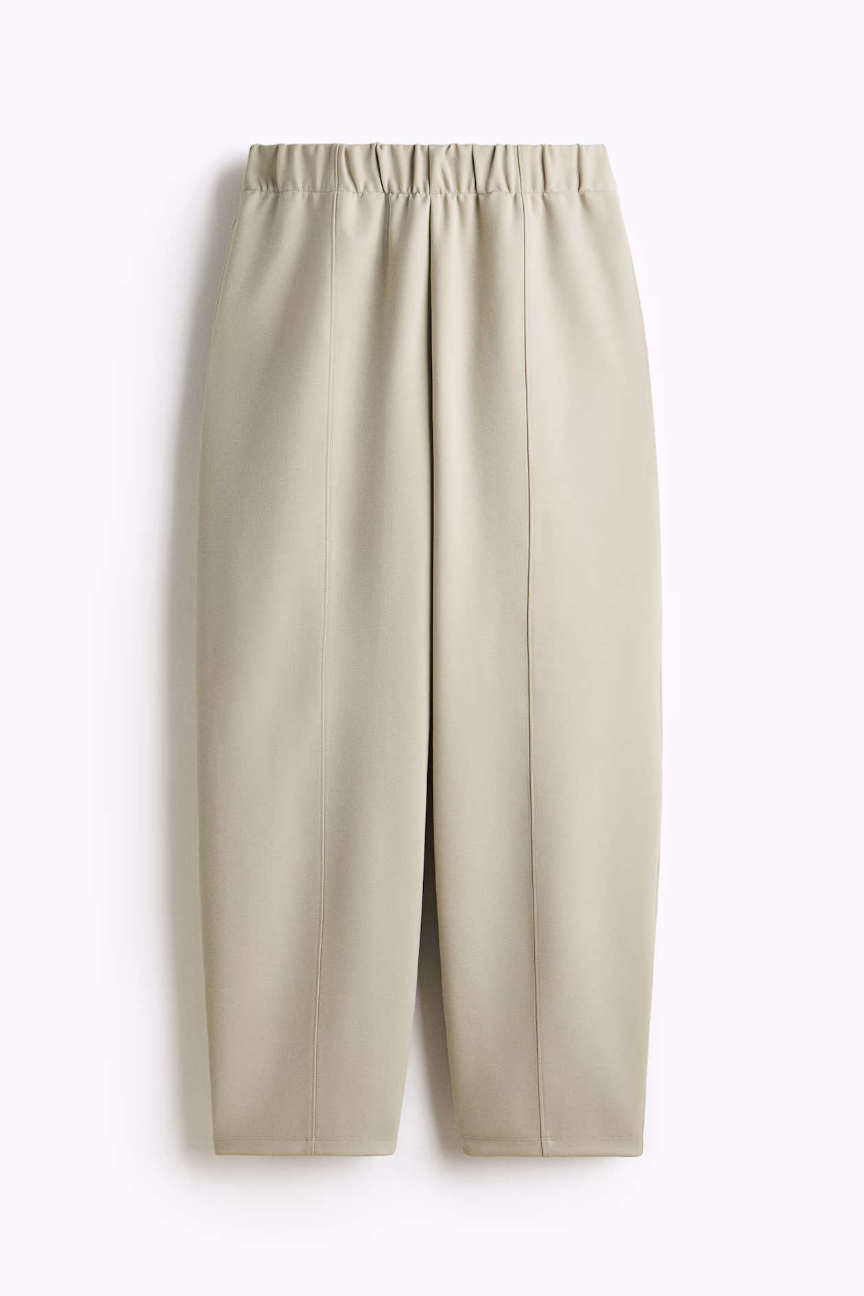 Loose-fit pants in ponte jersey with an elasticized waistband. Barrel legs with visible vertical seams at front and back.