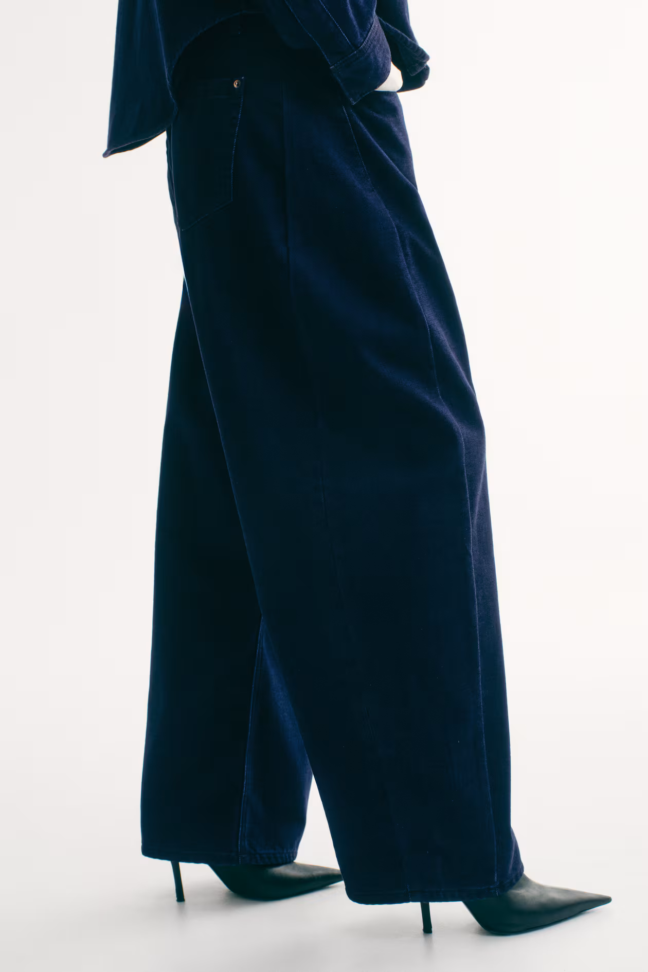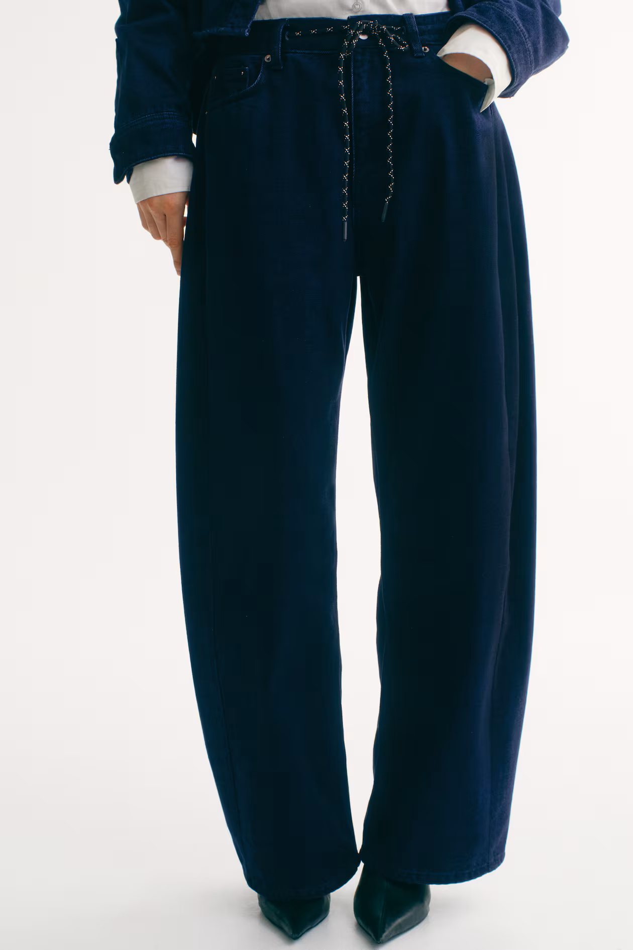 5-pocket jeans in rigid denim that feels firm at first, softening and relaxing with wear. Loose fit from hip to thigh. Regular waist, waistband with drawstring, and zip fly with button. Voluminous, curved legs, tapered to hems. Regular length, designed to fall at top of foot with little or no stacking. A relaxed and cool denim statement.