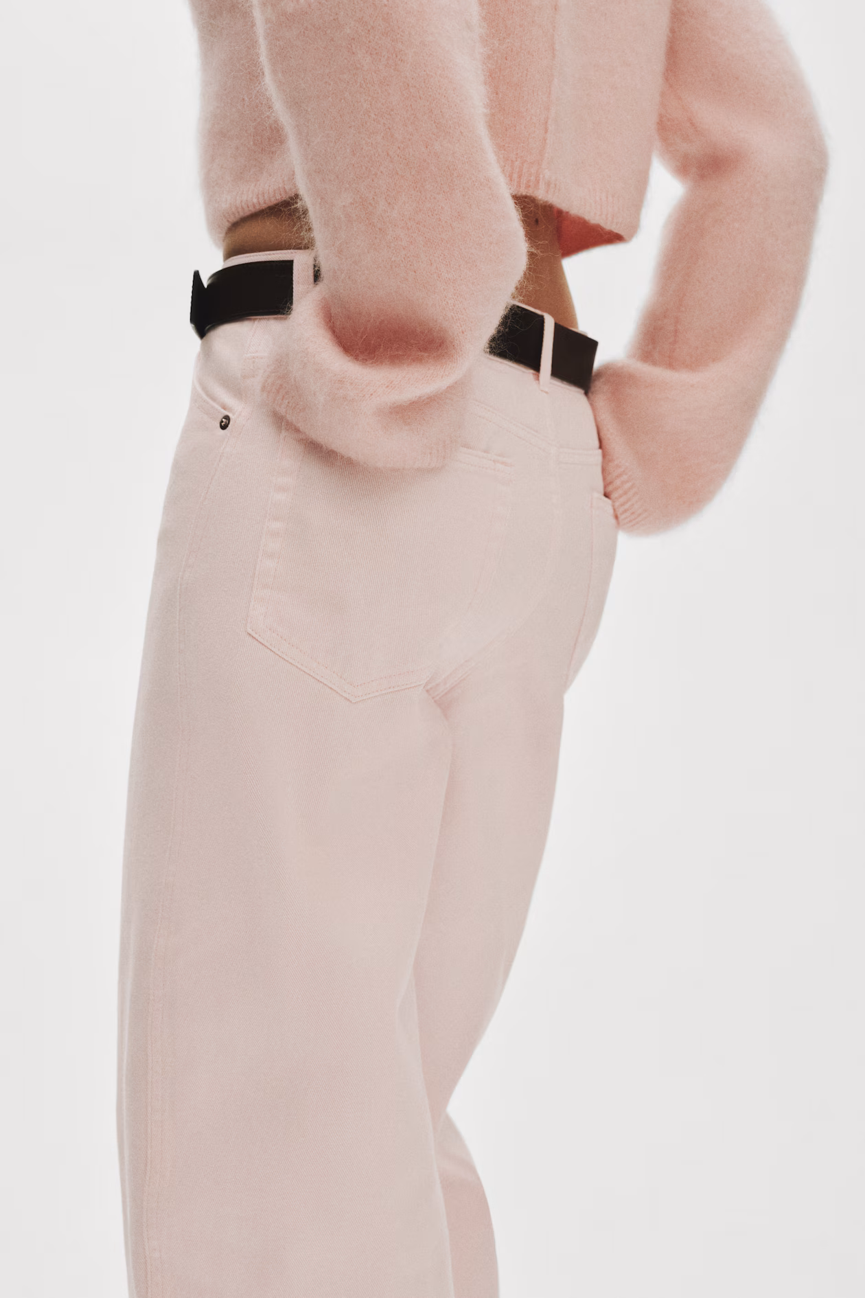 Ankle-length jeans in rigid cotton denim that feels firm at first, softening and relaxing with wear. Regular fit from hip to thigh, and tapered to hem. Regular waist, zip fly with button, front pockets, and back pockets. Curved, voluminous legs.