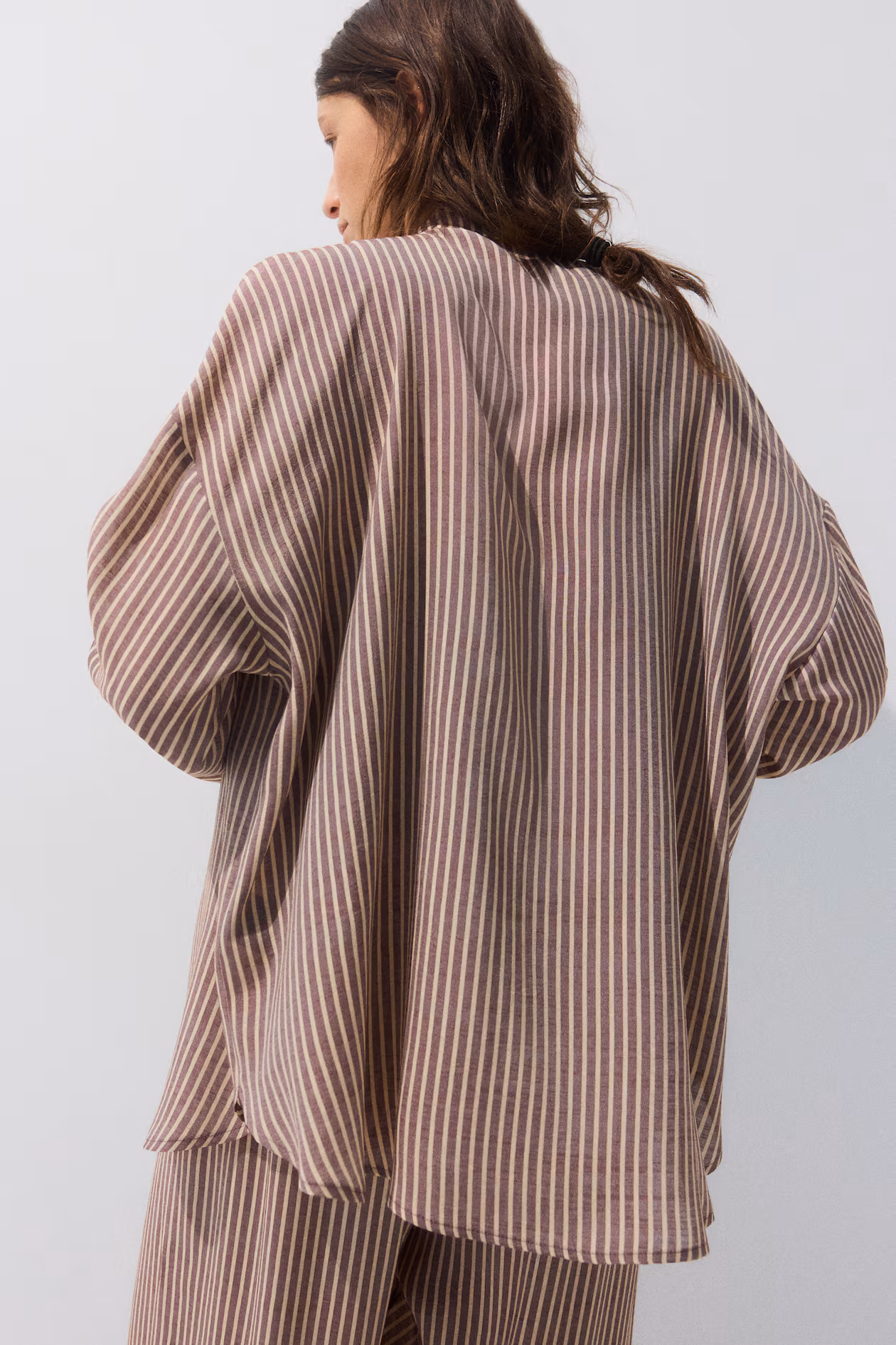 Relaxed-fit beach shirt in woven fabric. Collar, buttons at front, dropped shoulders, and long sleeves with button at cuffs. Rounded hem.