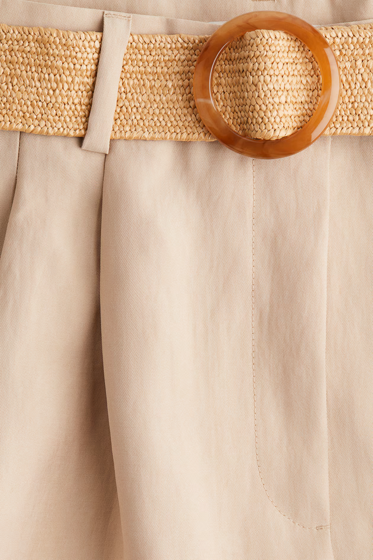 Tailored shorts in twill with pleats at front. High waist, a wide, braided belt, and zip fly with a concealed button and hook-and-bar fastener. Discreet side pockets, welt back pockets, and creases at front and back.