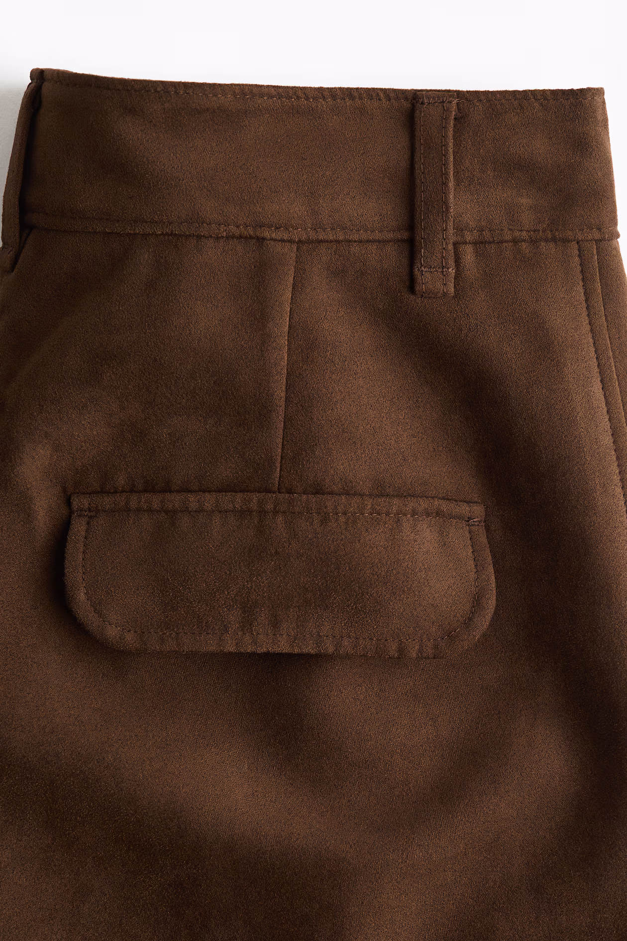 Loose-fit, knee-length shorts in woven fabric with a soft, napped finish. High waist, extended waistband tab with button, and zip fly. Pleats at front, diagonal side pockets, and back pockets with flap.