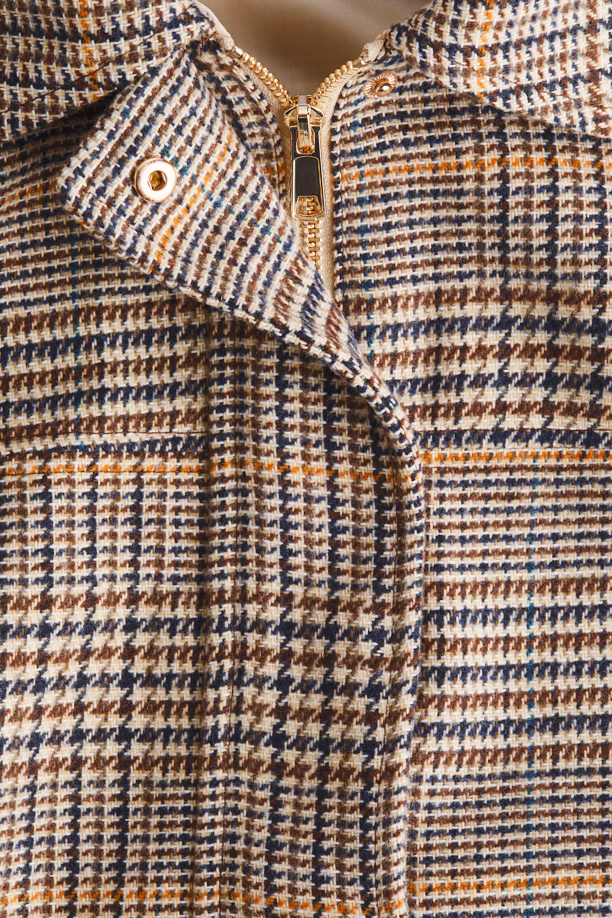 Jacket in woven fabric with an inverted box pleat at back for added volume. Collar, zipper at front with wind flap and concealed snap fasteners, yoke at front and back, and welt side pockets. Narrow elastic at hem. Lined.