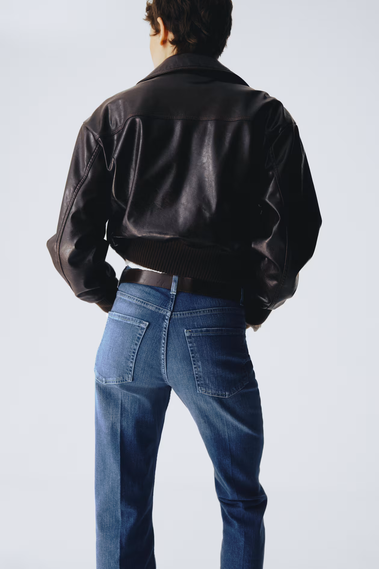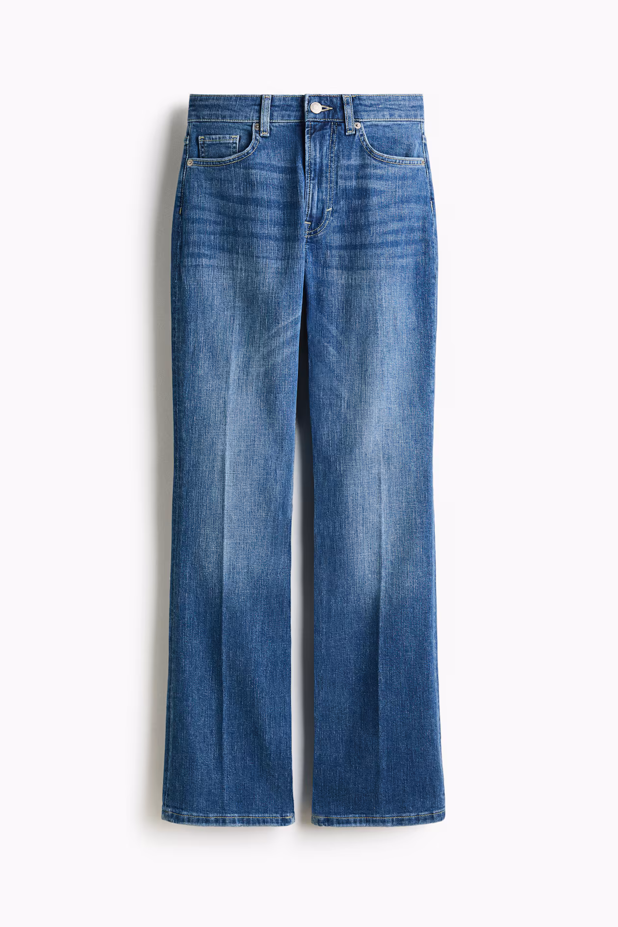 5-pocket, bootcut jeans in cotton denim with gentle stretch for good comfort. Slim fit from waist to thigh and flared from knee to hem. High waist, zip fly with button, and creases at front and back. Regular length, designed to fall at top of foot with little or no stacking. A fashion icon from the 70s to now.