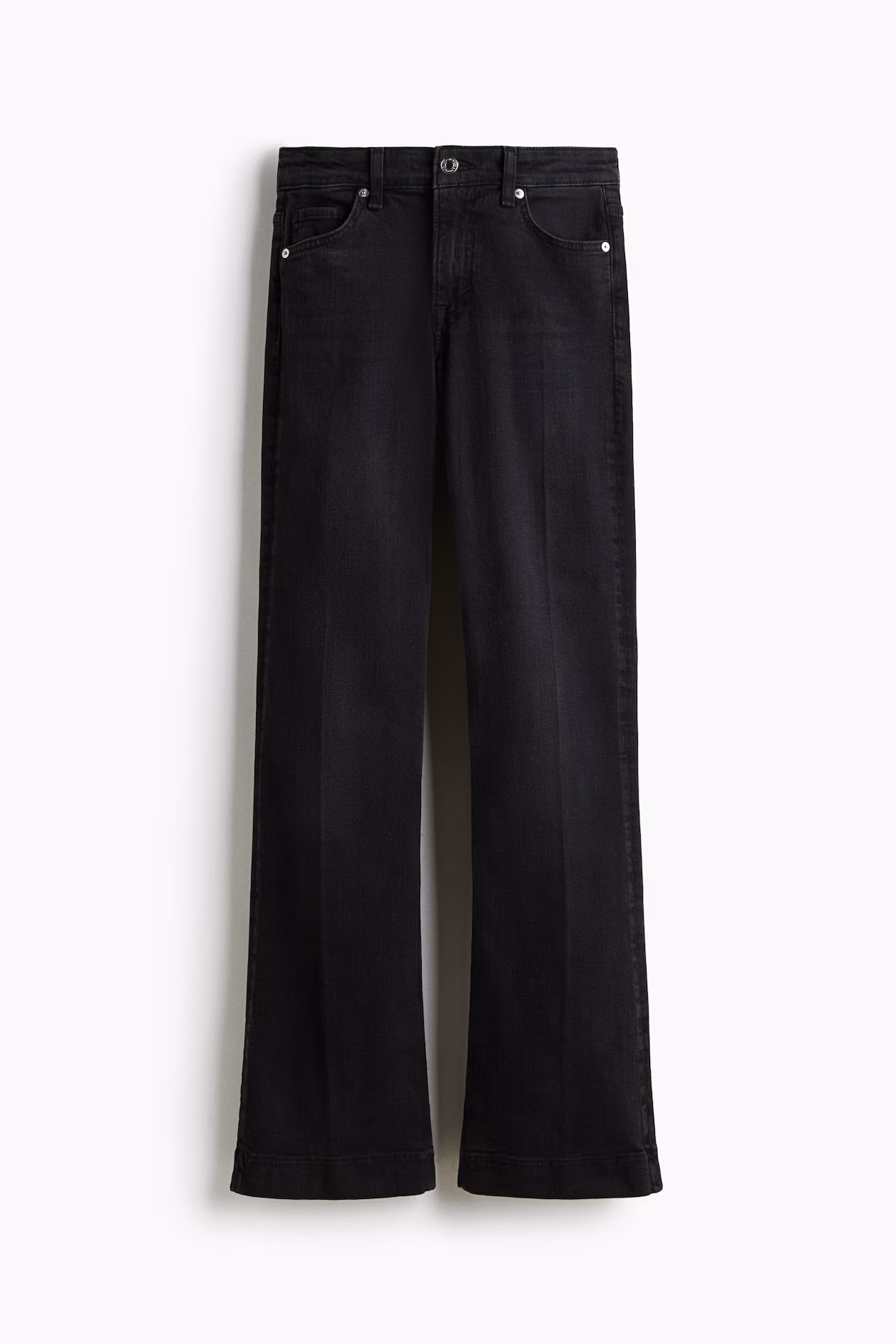 5-pocket jeans in denim with gentle stretch for good comfort. Slim fit from waist to thigh and flared from knee to hem. Regular waist, zip fly with button, and pressed creases at front and back. Regular-length bootcut legs designed to fall at top of foot with little or no stacking. Style with everything from crop tops to chunky knitwear.
