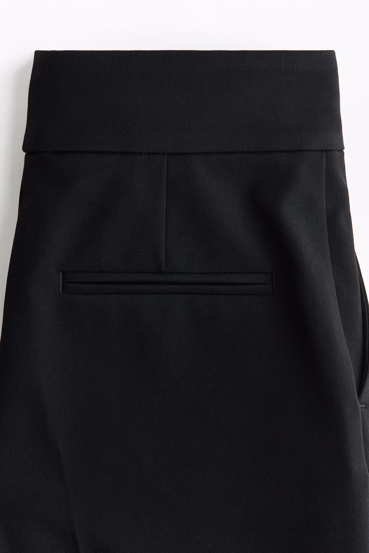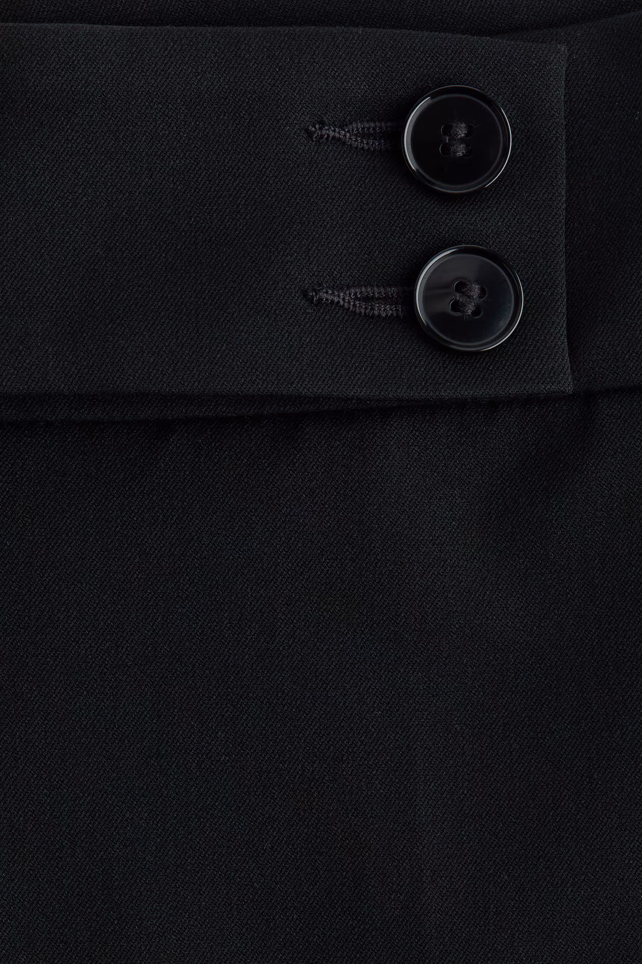 Fitted pants in twill. High waist, extended waistband tab with buttons and a concealed hook-and-bar fastener, and zip fly. Side pockets, a welt back pocket, and bootcut legs with creases at front and back.