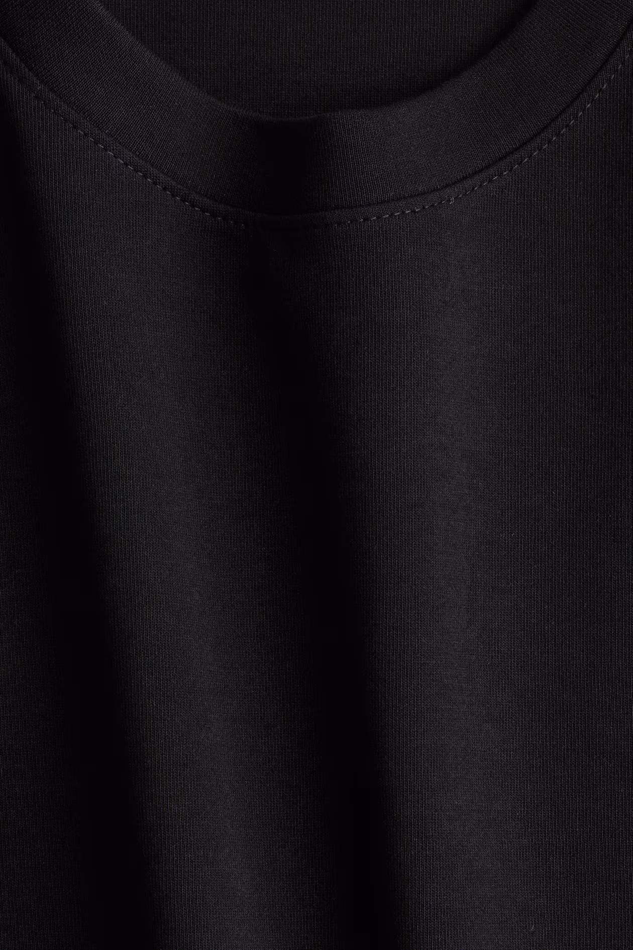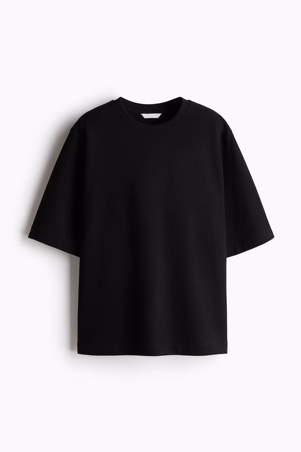 Loose-fit, boxy T-shirt in thick interlock jersey made from a cotton blend. Crew neck, dropped shoulders, and sleeves finishing just above elbows.