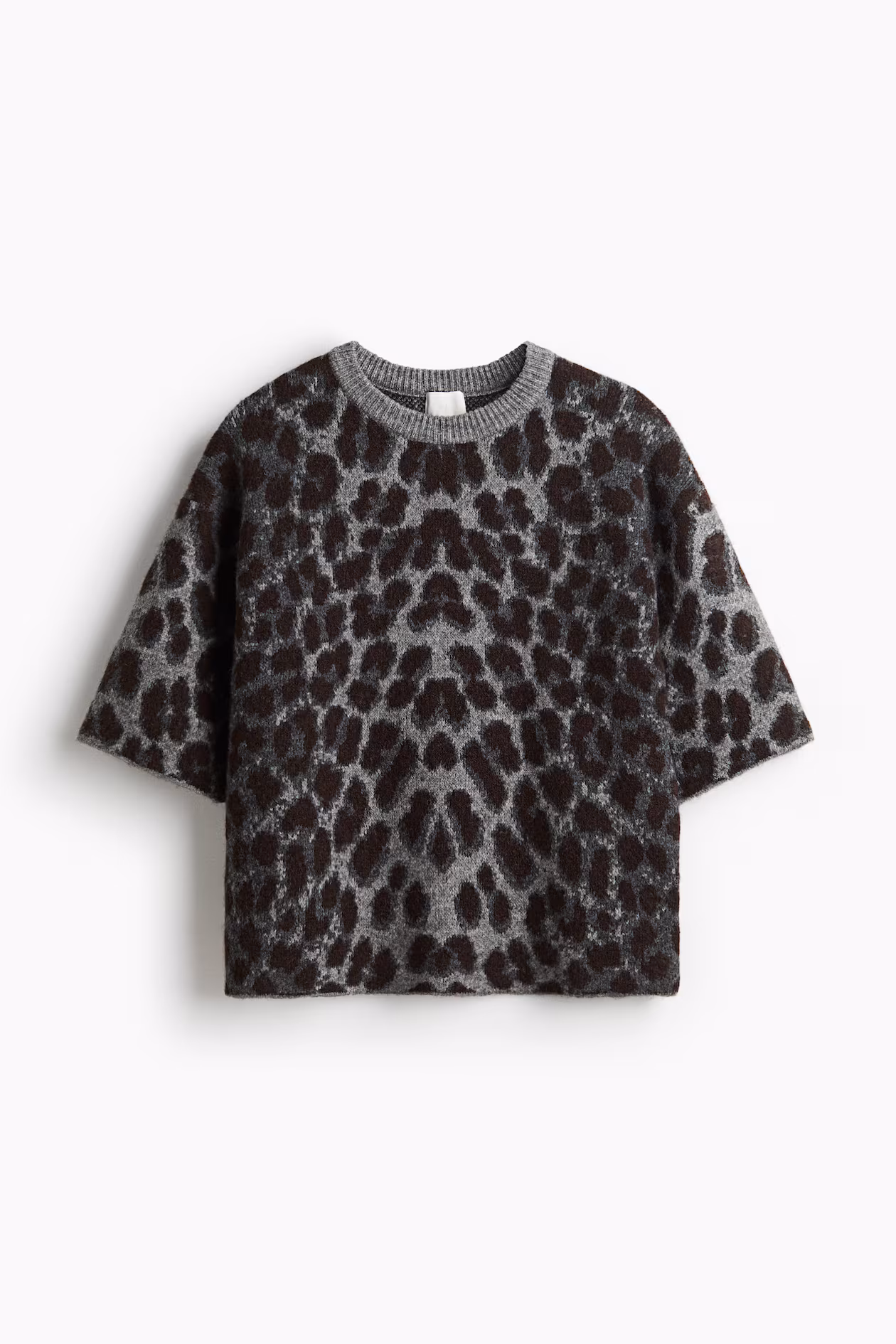 Boxy, loose-fit sweater in a soft jacquard knit. Round, ribbed neckline, dropped shoulders, and elbow-length sleeves.