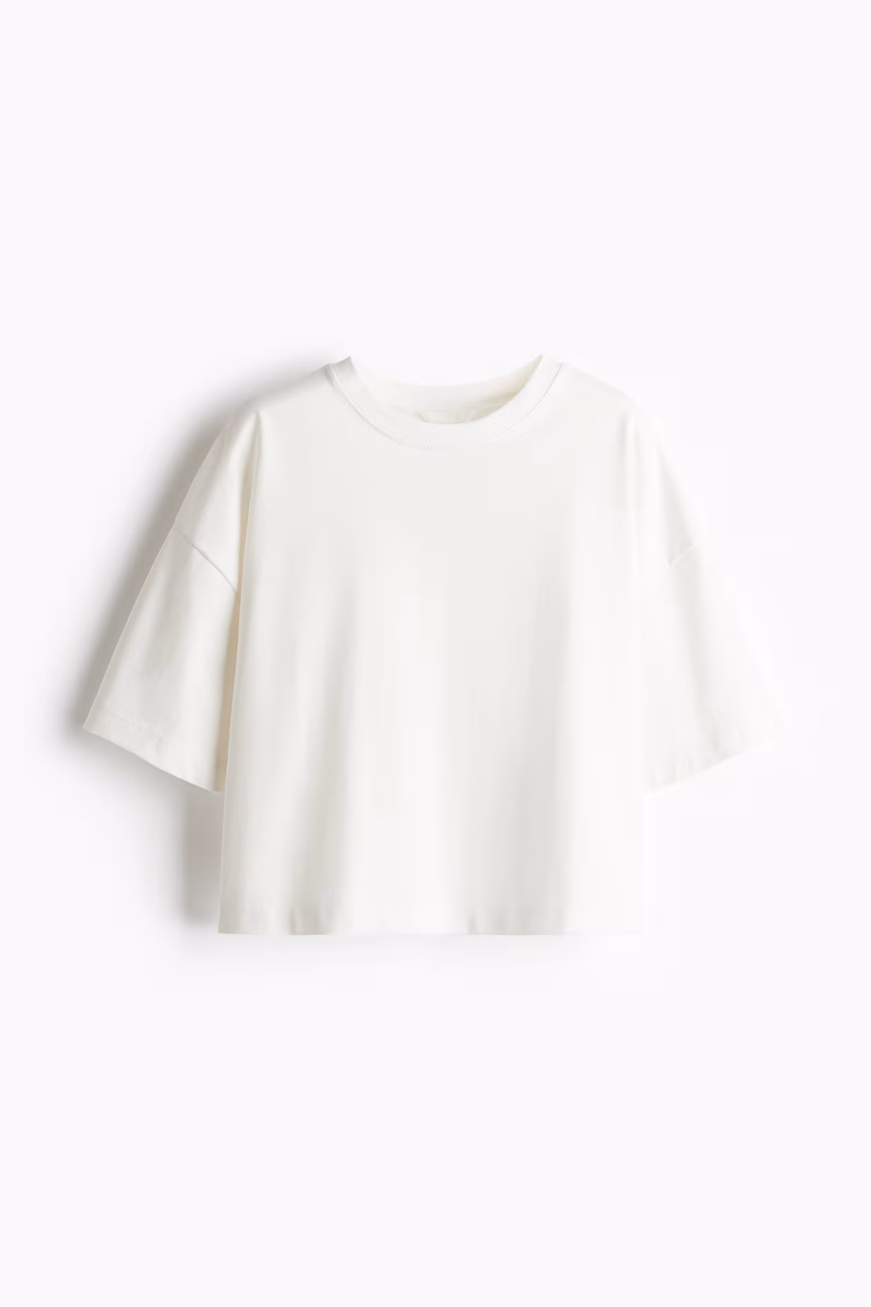 Boxy, loose-fit T-shirt in soft cotton jersey. Crew neck, dropped shoulders, and elbow-length sleeves. Straight-cut hem.