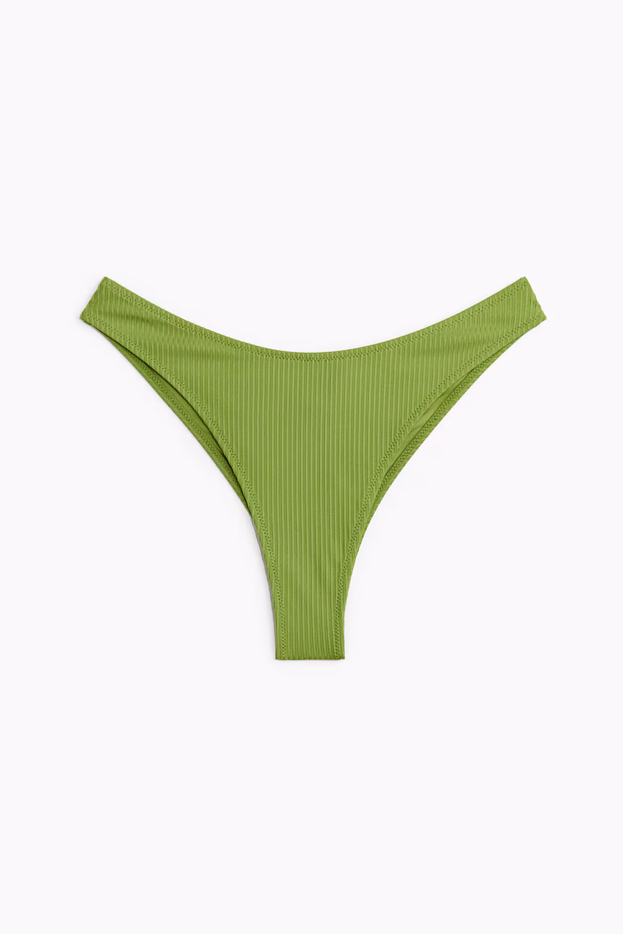 Fully lined bikini bottoms with a curved, mid-rise waist. High-cut back.