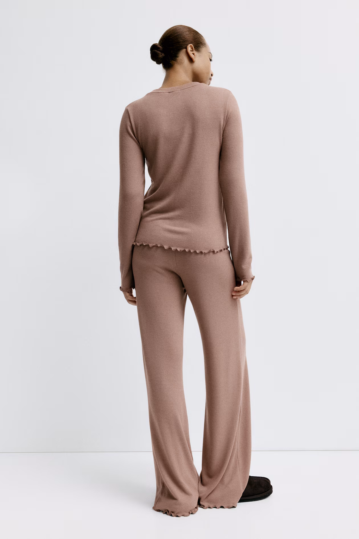 Pajamas in soft, brushed viscose-blend jersey with a top and pants. Top with a round neckline, long sleeves, and overlocked edges at cuffs and hem. Pants with an elasticized waistband and straight legs with overlocked hems.