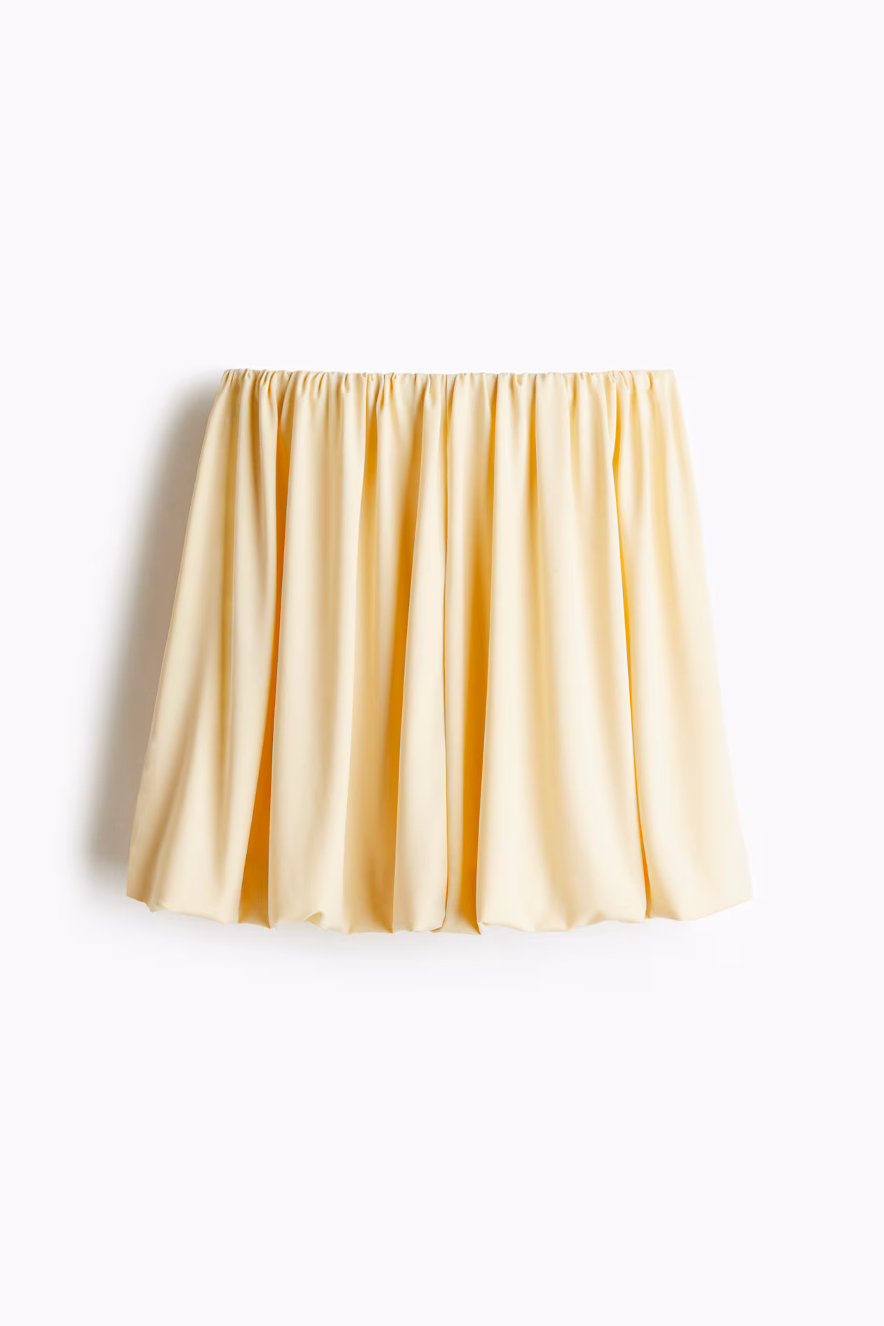 A-line mini skirt in woven crêpe fabric. High waist, gathered waistband with concealed elastic, and a bubble hem for a puffy silhouette. Lined.