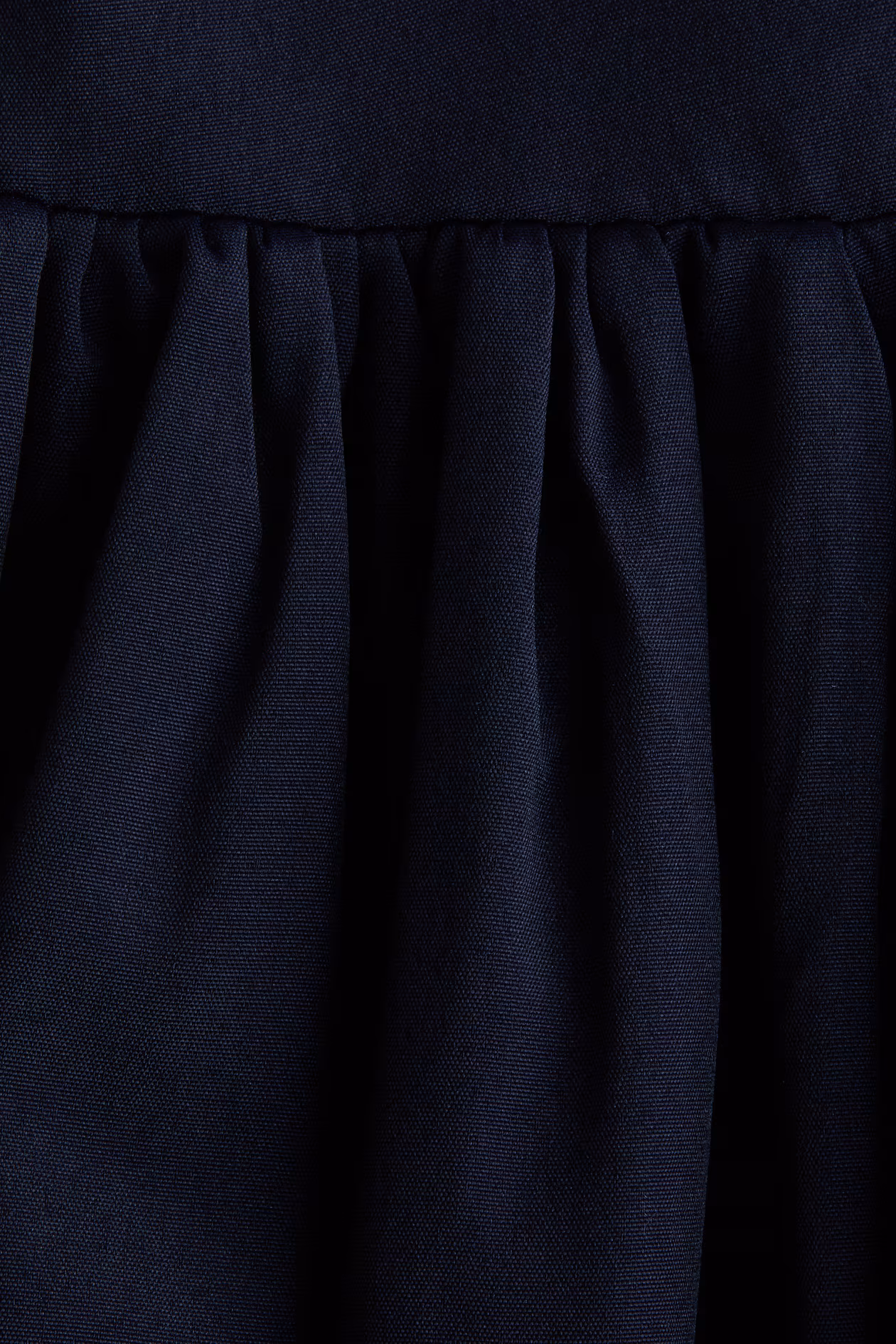 Sleeveless dress in woven fabric with vertical shaping seams at front. Collar, buttons at front, and a bubble hem for a puffy silhouette. Partly lined.