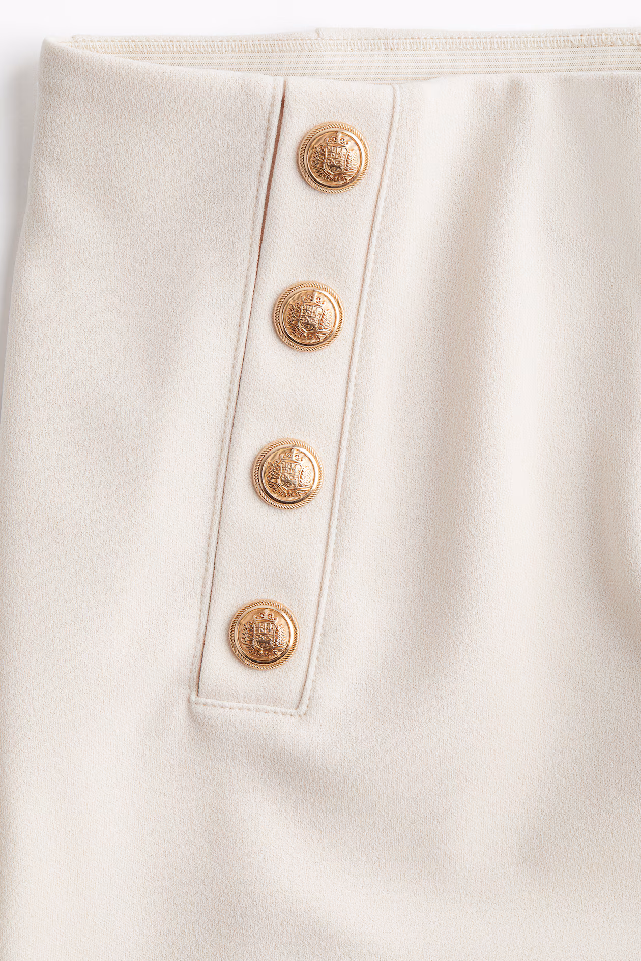 Pants in thick jersey. High waist, waistband with concealed elastic, and decorative buttons at front. Straight, wide legs.