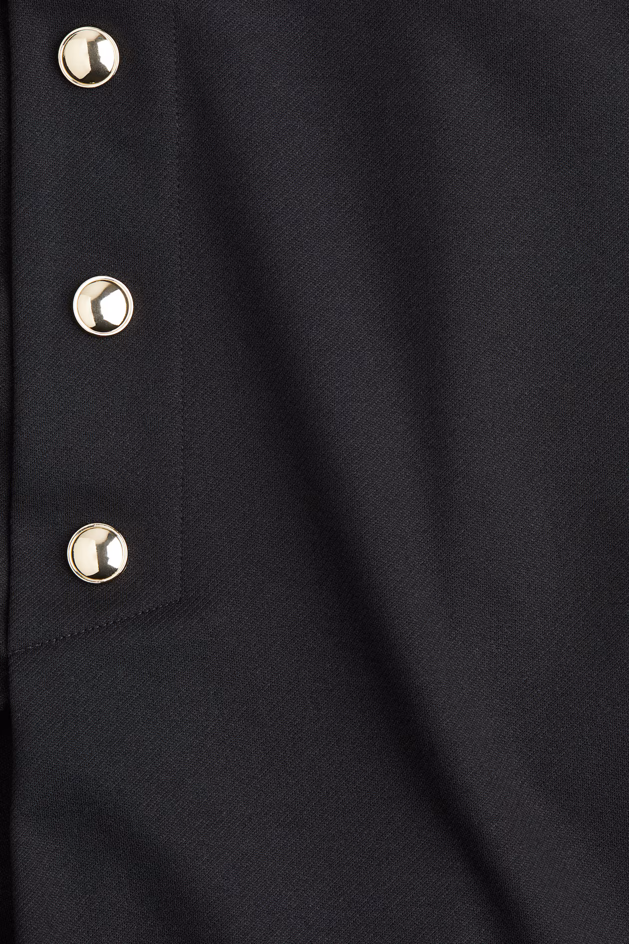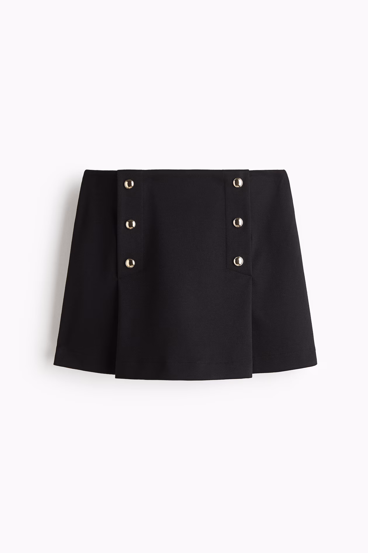 Short skort in thick jersey. High waist, concealed, elasticized waistband, and pleats at front with decorative buttons.