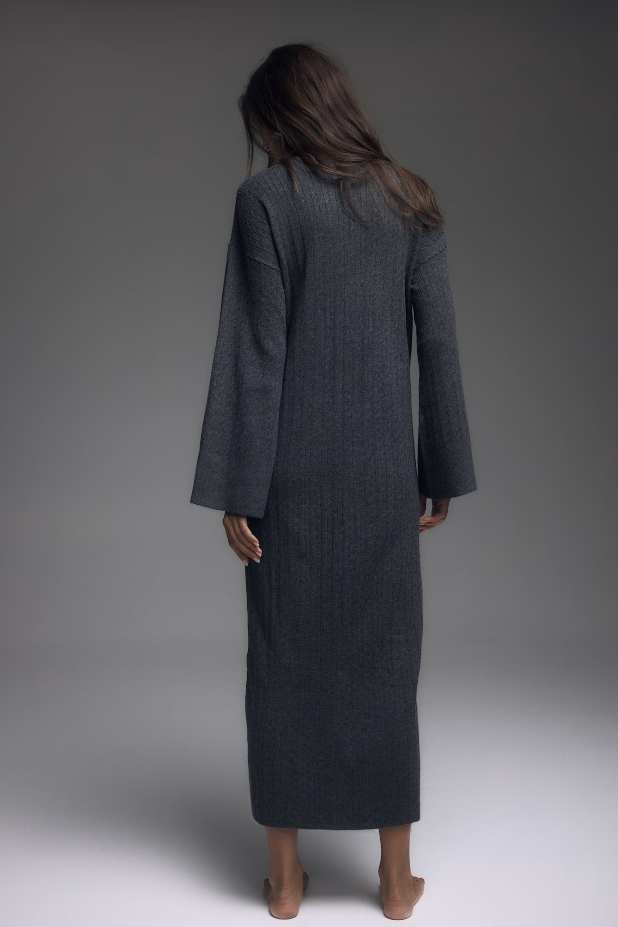 Ankle-length dress in a soft cable knit. Round neckline, dropped shoulders, and long sleeves. Ribbing at neckline, cuffs, and hem.