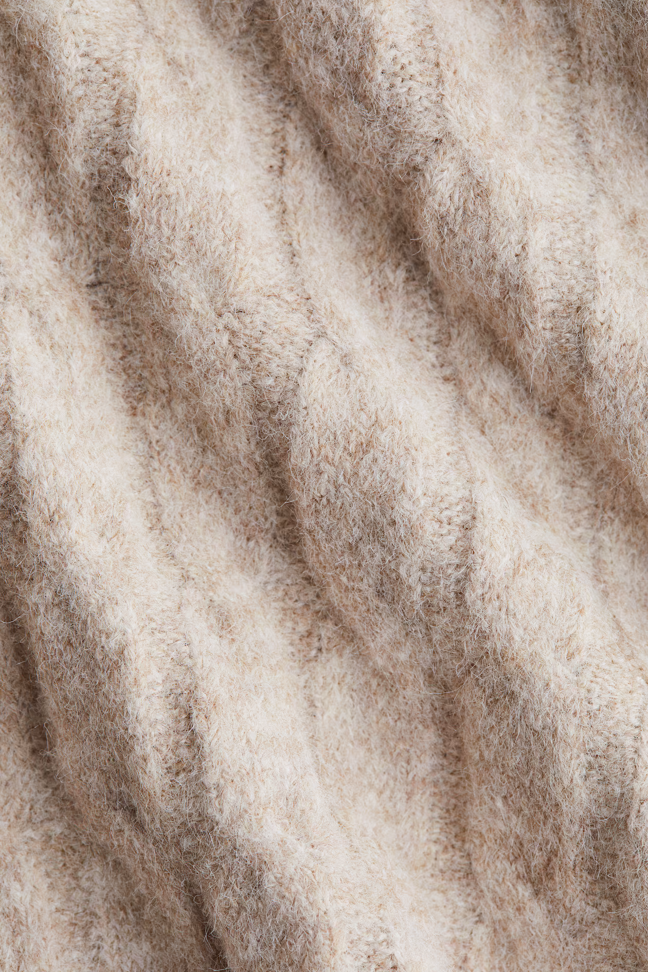 Loose-fit polo sweater in a soft cable knit with wool content. Ribbed collar, V-shaped opening at front, dropped shoulders, and long sleeves with ribbed cuffs. Ribbed hem with a slit at sides.