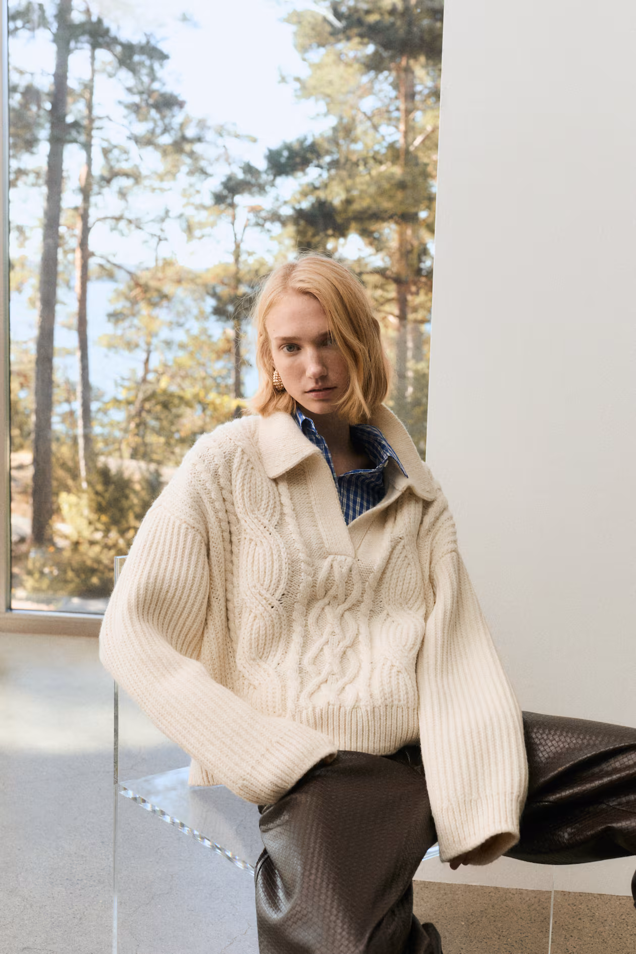 Cable-Knit Sweater with Collar