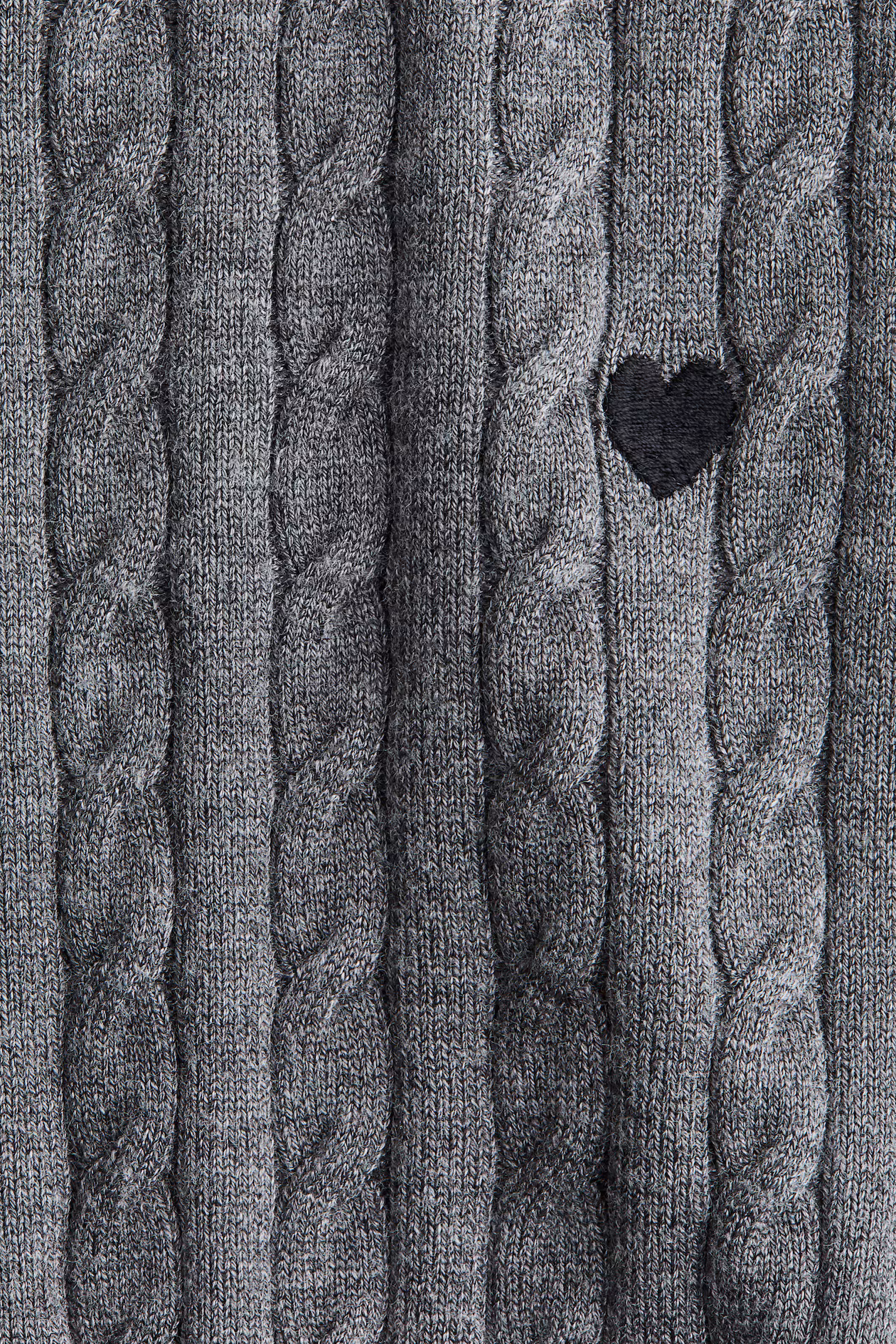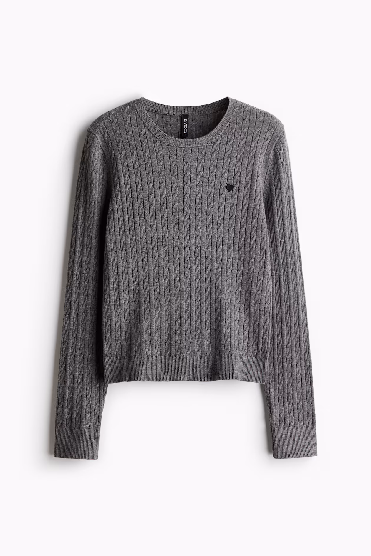 Fitted, cable-knit sweater with a small, embroidered heart on chest. Round neckline, long sleeves, and ribbing at neckline, cuffs, and hem.