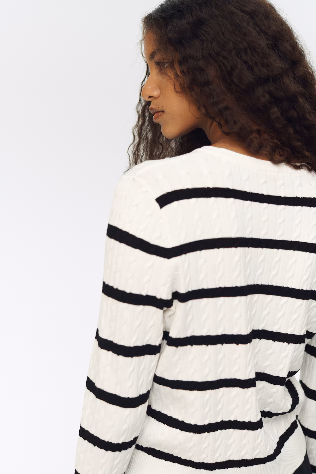 Cable-knit sweater in a soft viscose blend. Round neckline and ribbing at neckline, cuffs, and hem.