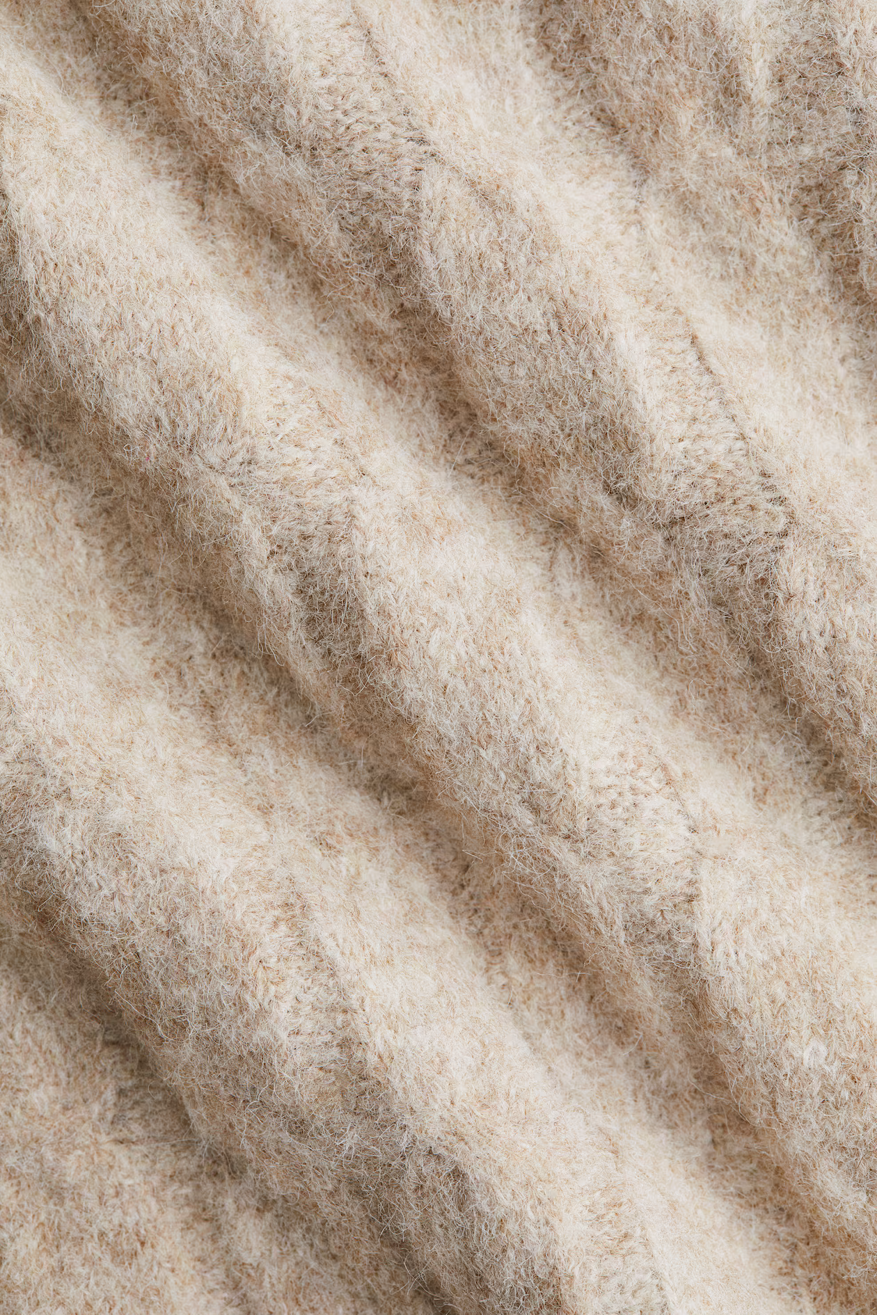 Loose-fit sweater in a cable knit with wool content. Round, ribbed neckline, dropped shoulders, and long sleeves with wide, ribbed cuffs. Ribbed hem with a short slit at sides.