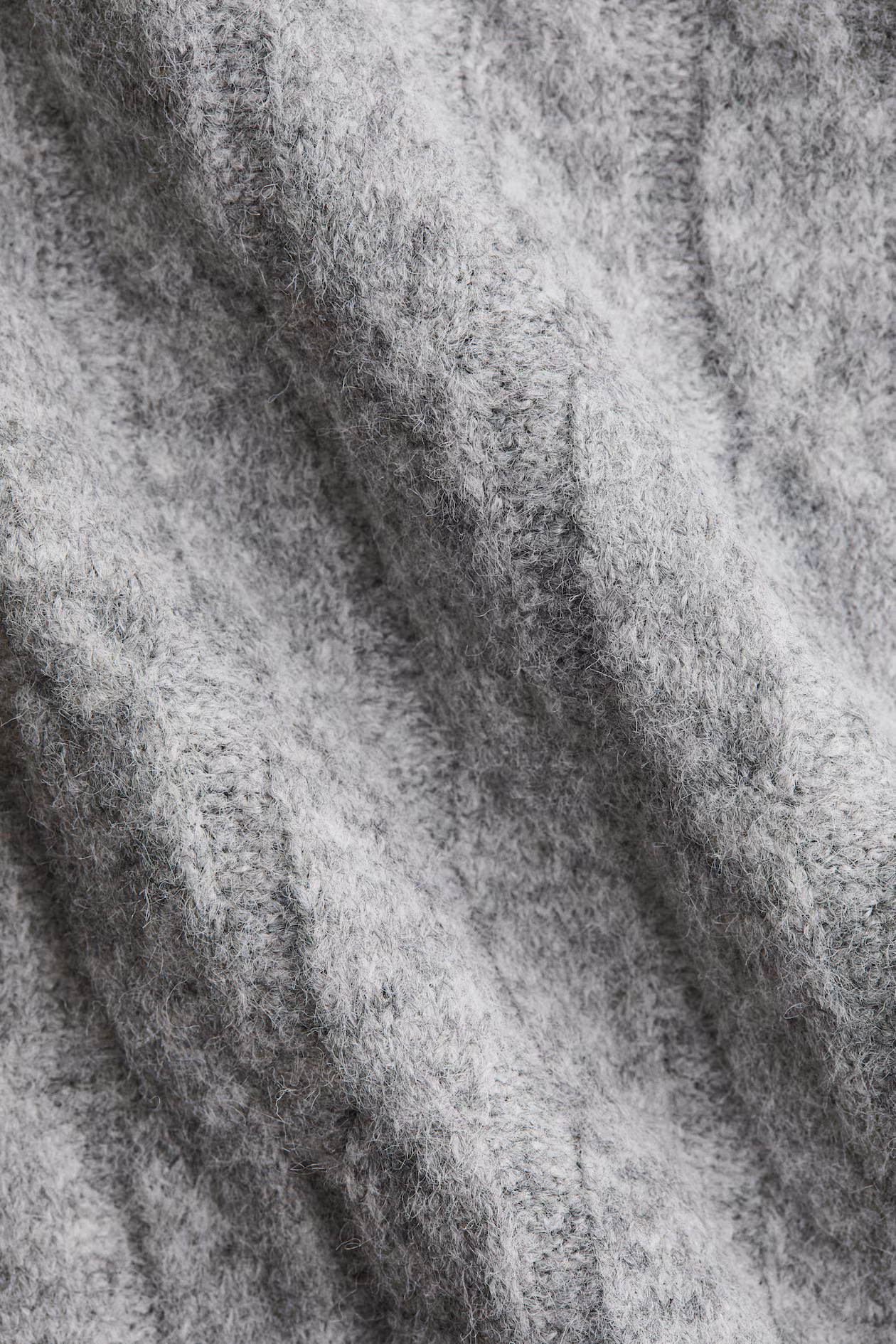Loose-fit sweater in a cable knit with wool content. Round, ribbed neckline, dropped shoulders, and long sleeves with wide, ribbed cuffs. Ribbed hem with a short slit at sides.