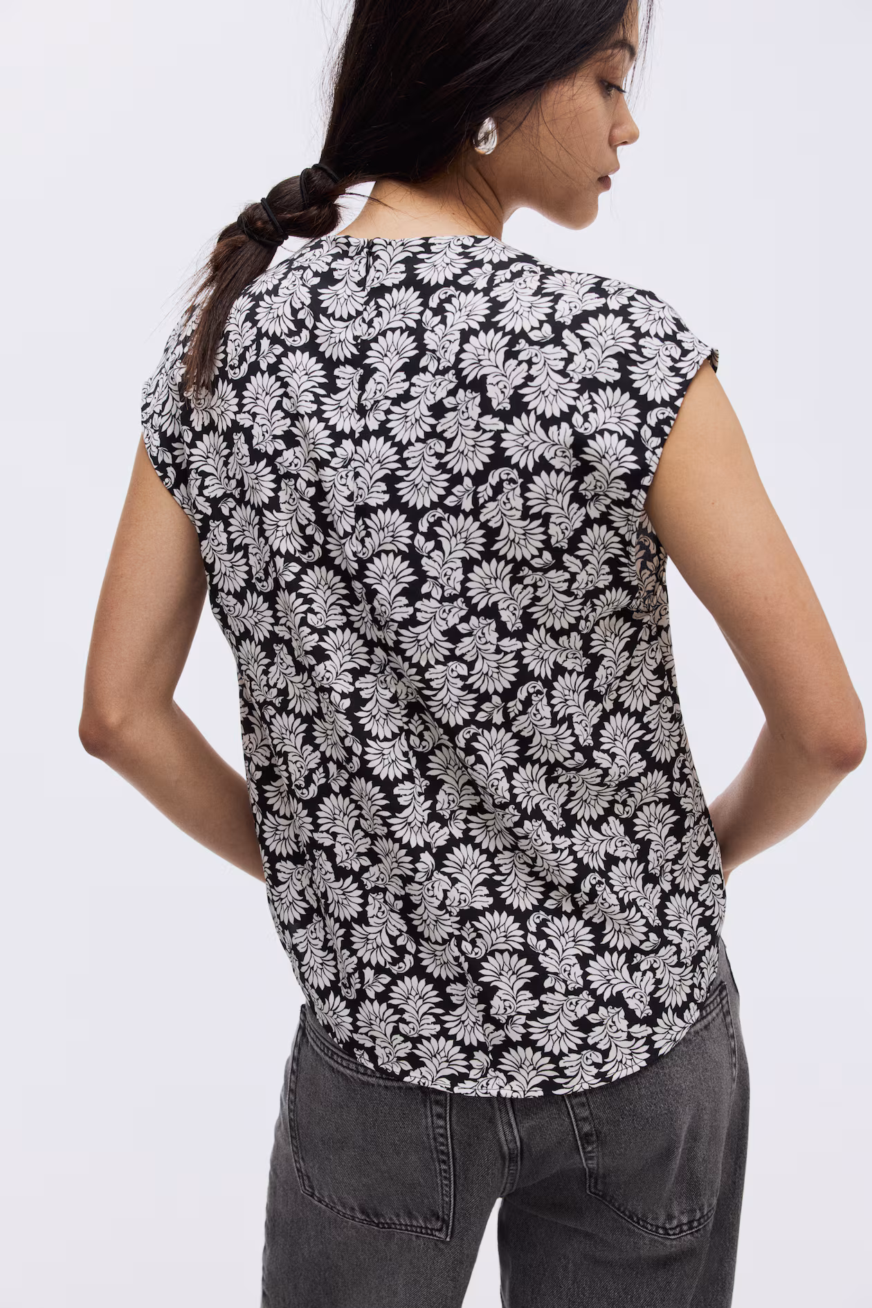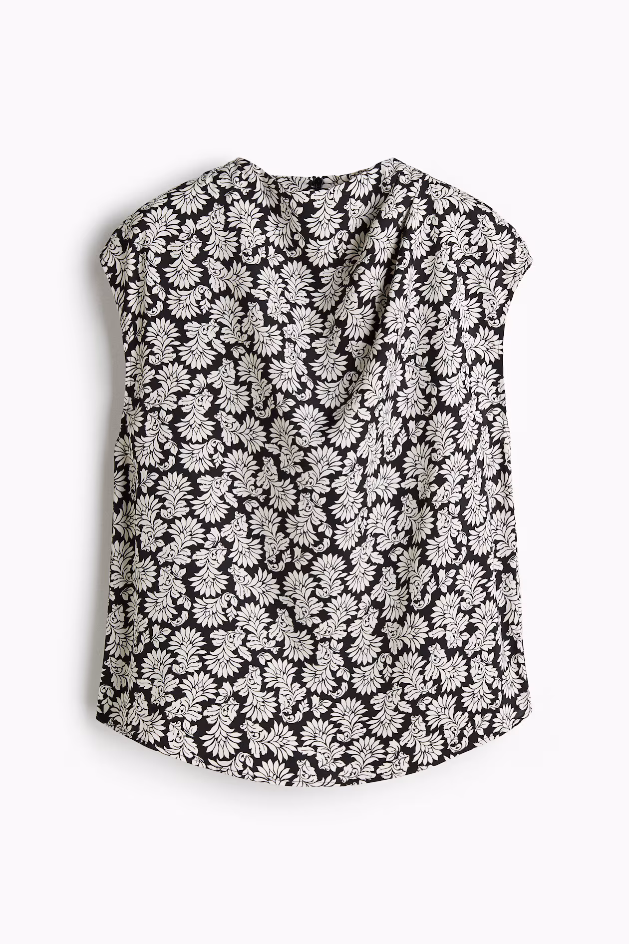 Blouse in twill. Cowl neck, concealed zipper at back, and cap sleeves. Gently rounded hem.