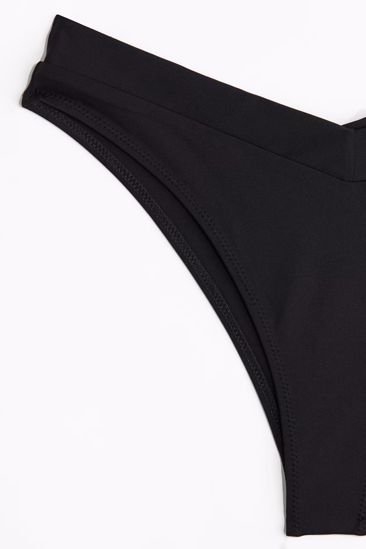 Fully lined bikini bottoms with a mid-rise, V-cut waist and cutaway coverage at back.