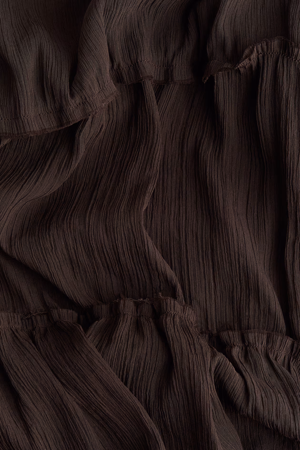 Flared maxi dress in crinkled chiffon. Round, gathered, ruffle-trimmed neckline, keyhole opening at back with button, and long raglan balloon sleeves with wide, close-fitting cuffs. Gathered, ruffle-trimmed tiers and a high slit at front. Unlined.