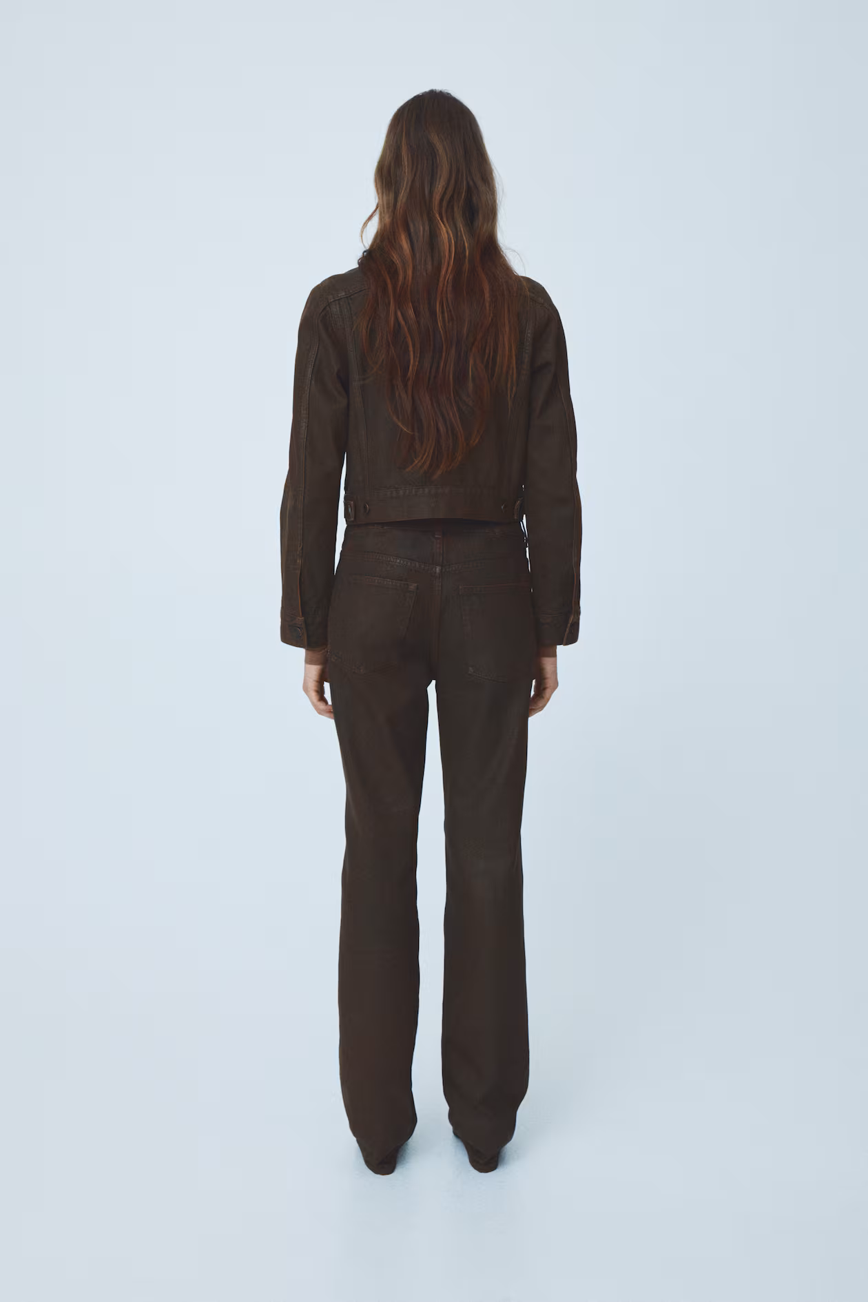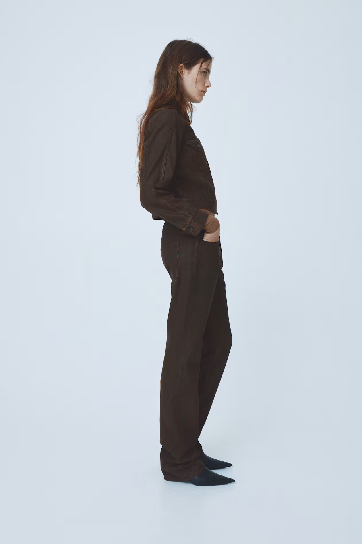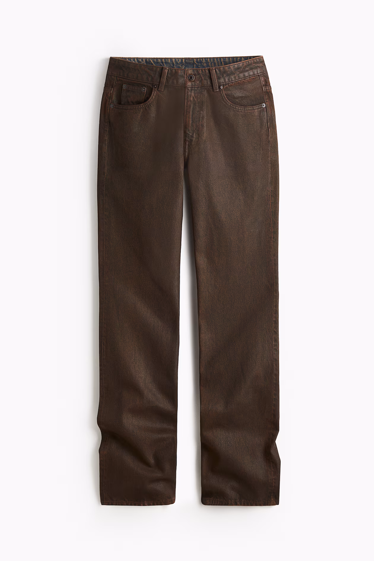 Timeless 5-pocket jeans in rigid cotton denim with slightly distressed-look coating. Regular waist, zip fly with button, and a classic V-shaped yoke at back. Straight, longer legs.