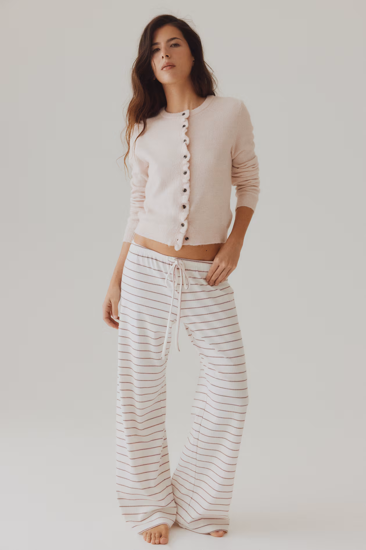 Relaxed-fit, wide-leg pants in ribbed jersey made from a cotton blend. Low waist, narrow drawstring, and covered elastic at waistband.