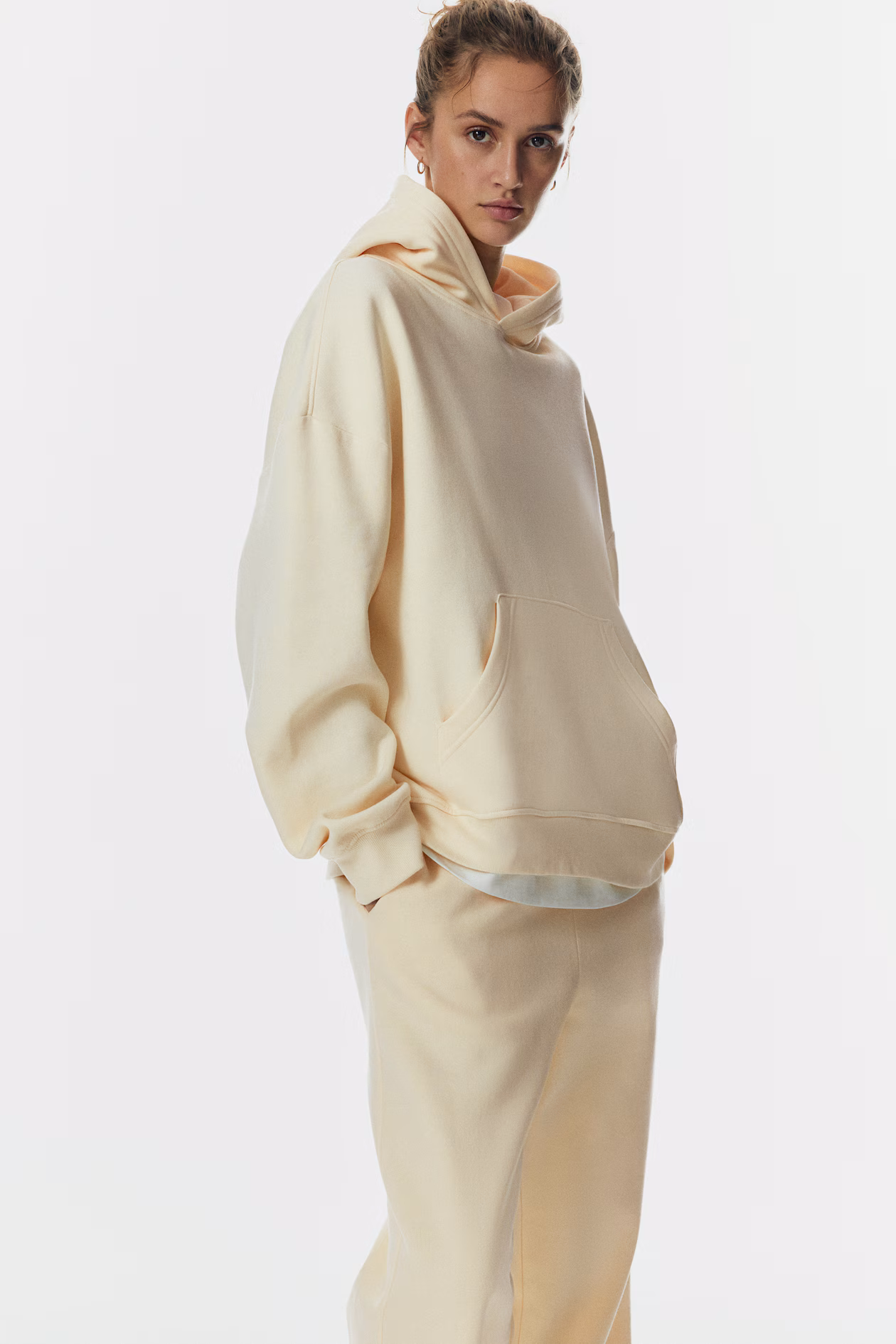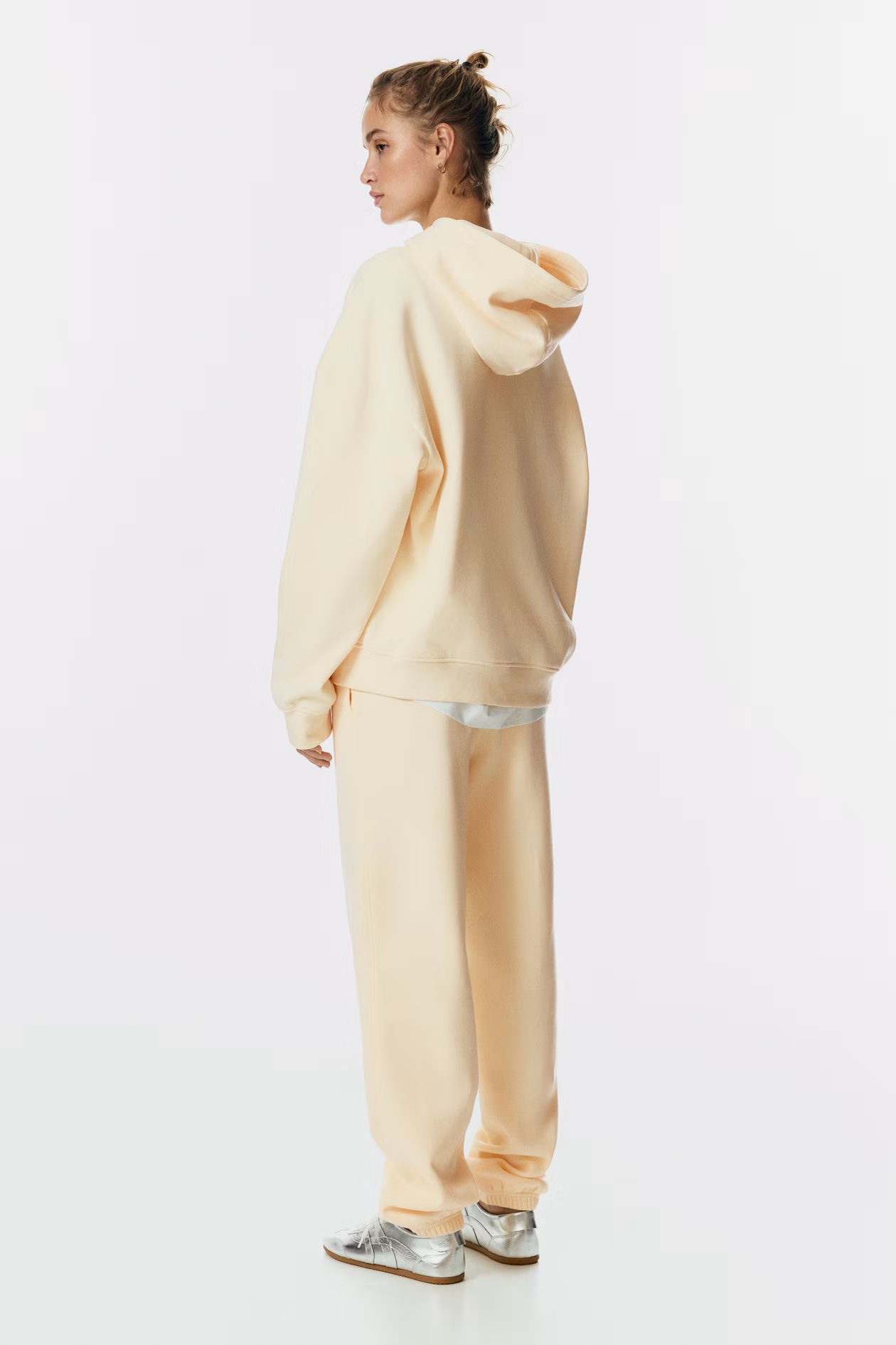 Sweatpants in soft, cotton-blend fabric with soft, brushed inside. High waist with covered, elasticized waistband and drawstring, side pockets, and covered elastic at hems.