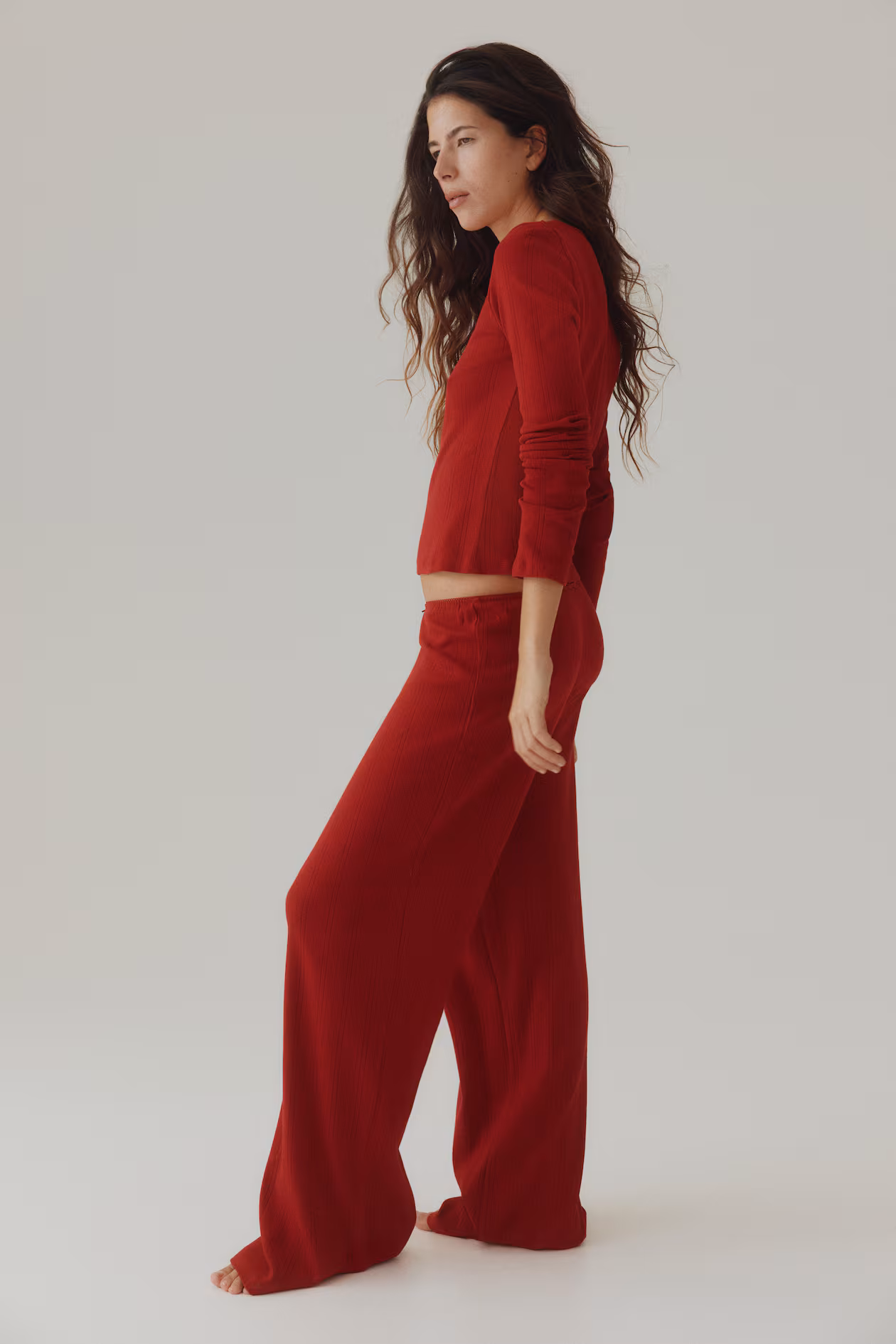 Pajamas in cotton pointelle jersey with a top and pants. Long-sleeved top with a picot-trimmed scoop neck. Pants with a picot-trimmed waistband and straight legs.