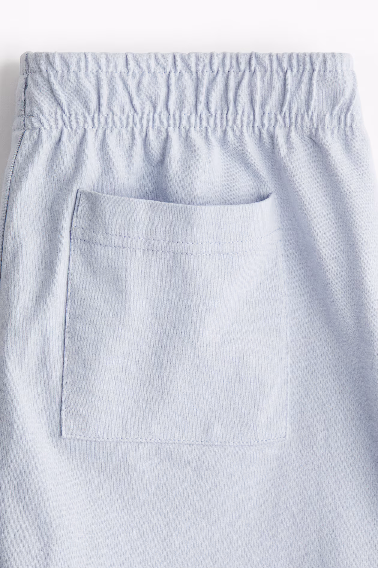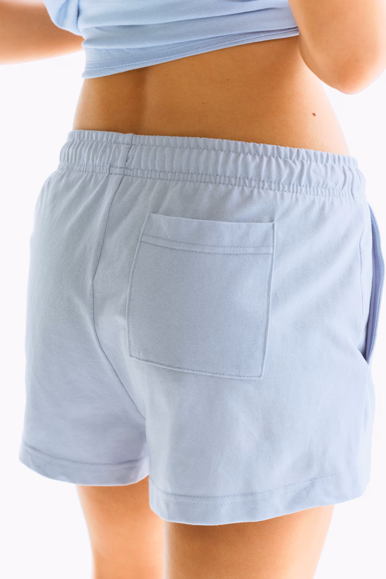 Shorts in soft cotton jersey. Covered elastic at waistband, diagonal side pockets, and a patch back pocket.