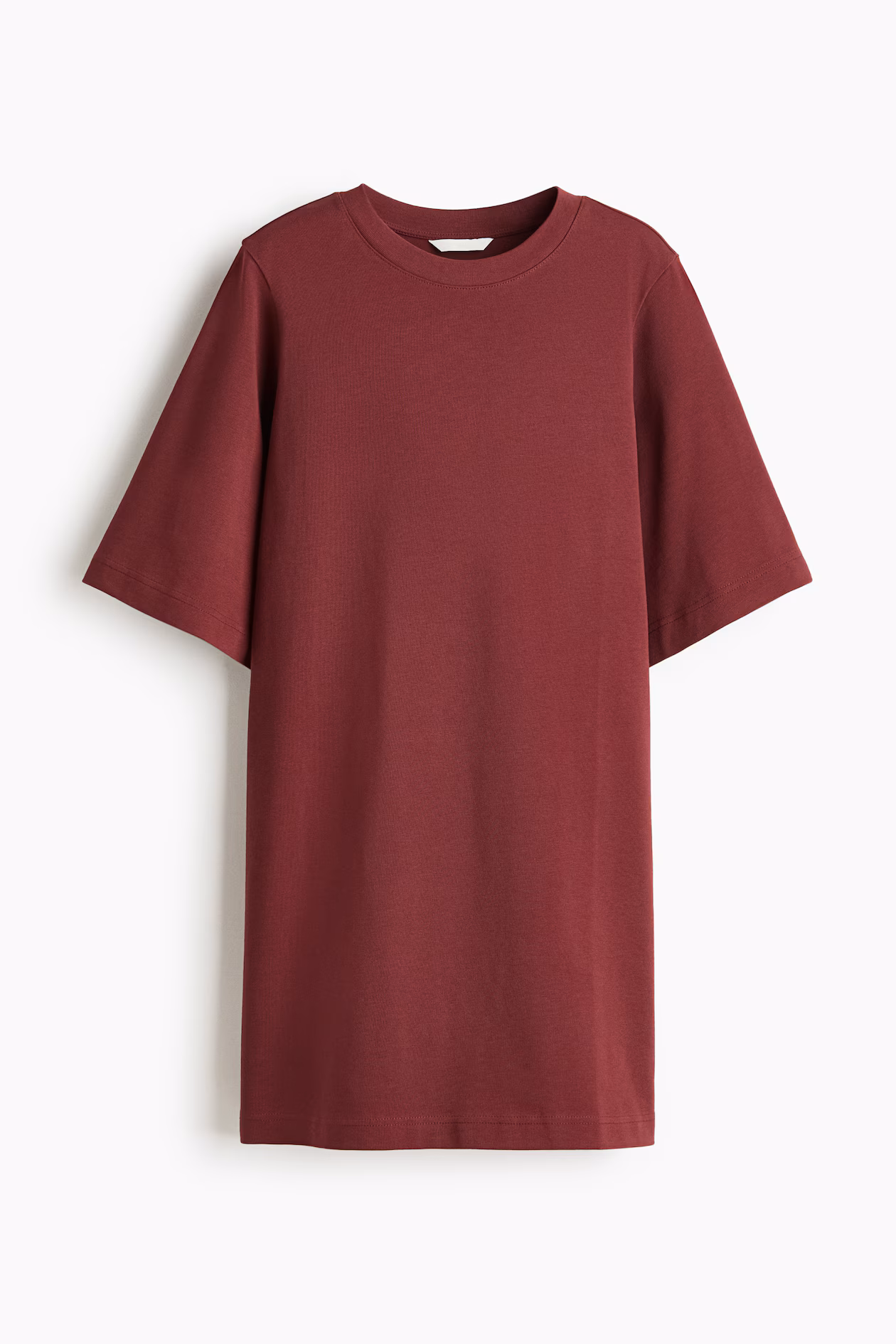 Short T-shirt dress in soft cotton jersey. Ribbed crew neck, gently dropped shoulders, and elbow-length sleeves.