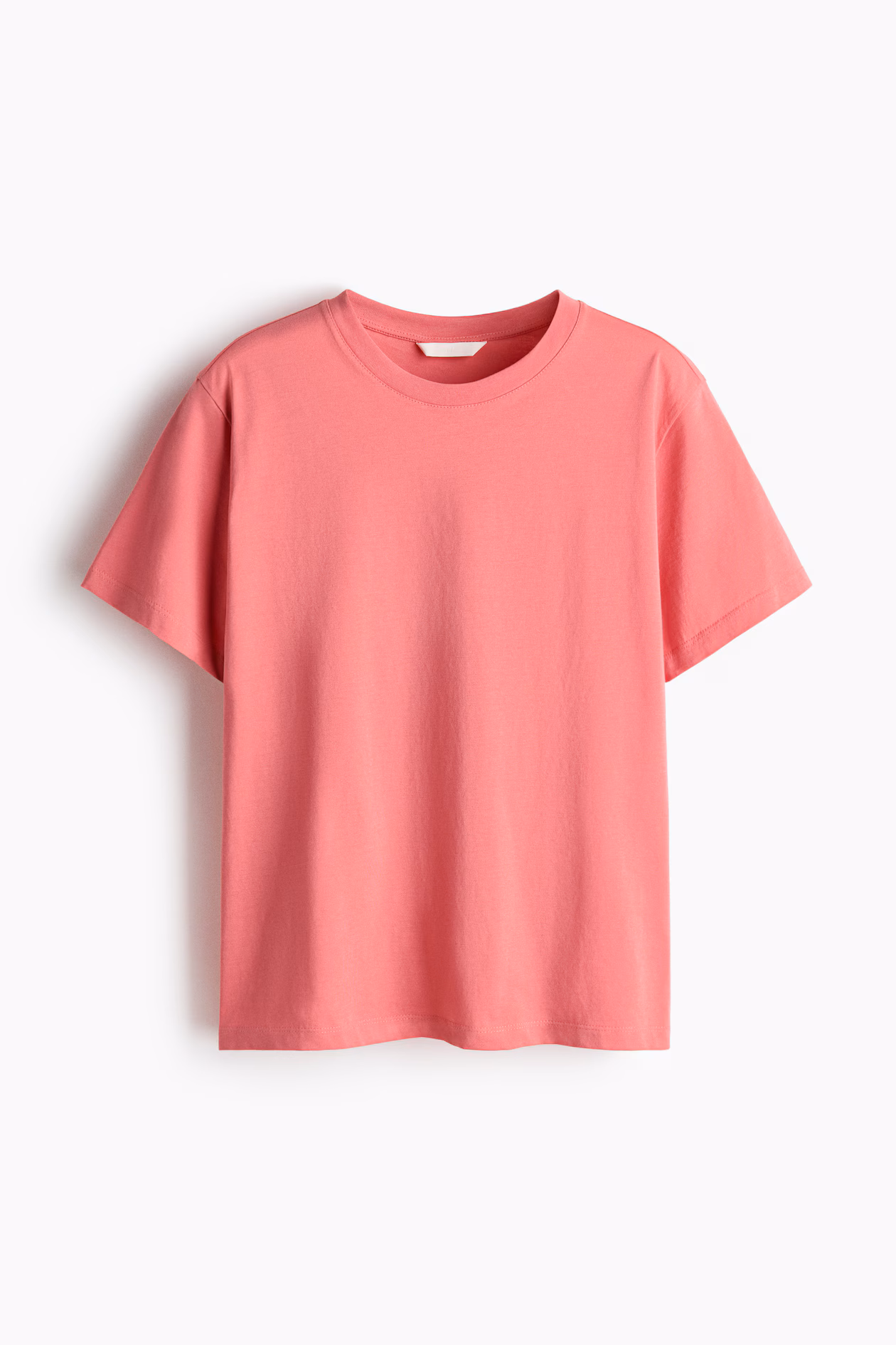 Straight-cut T-shirt in soft cotton jersey with ribbed crew neck and gently dropped shoulders.