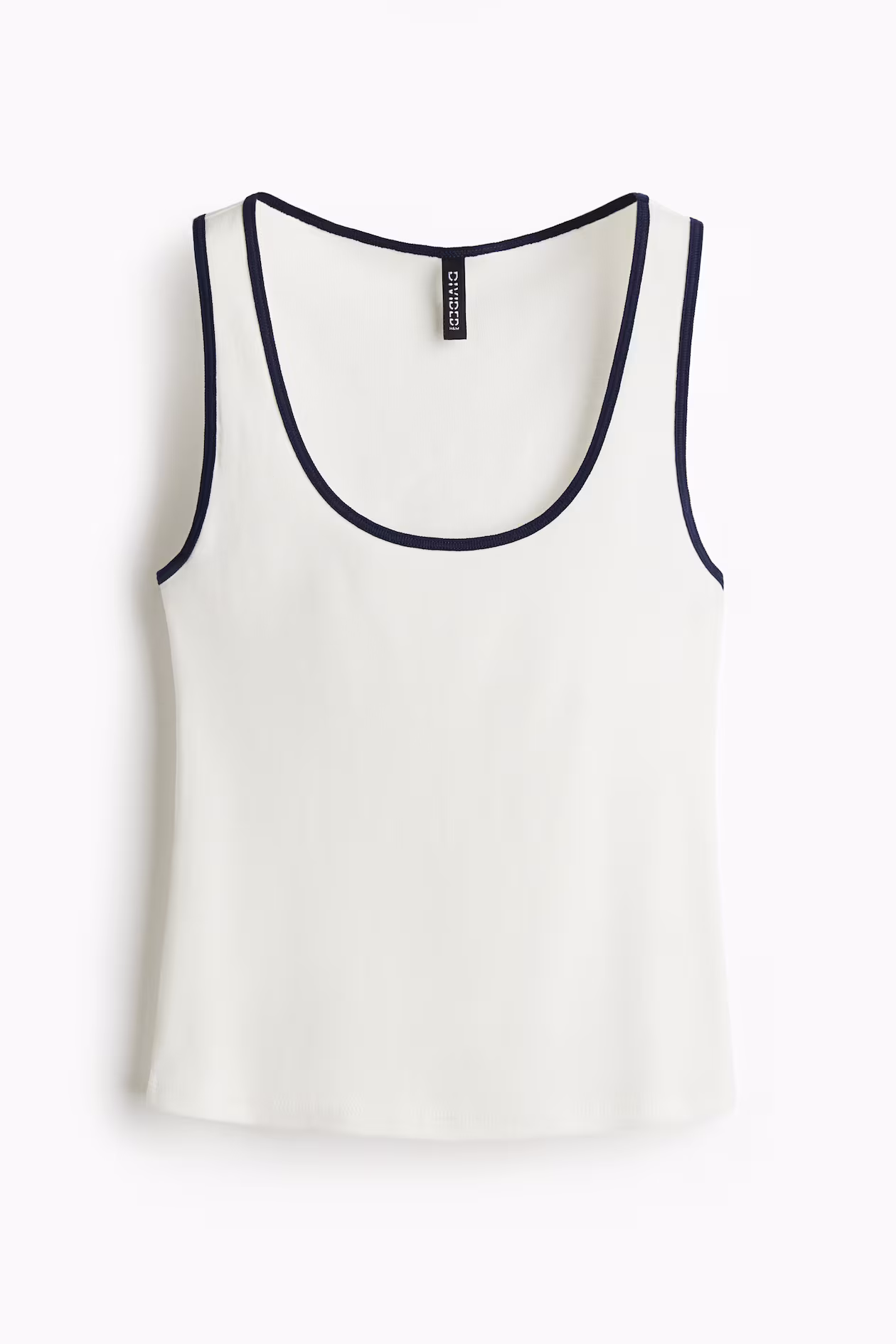 Short, fitted tank top in soft cotton jersey. Round, low-cut neckline and contrasting trim at neckline and armholes.