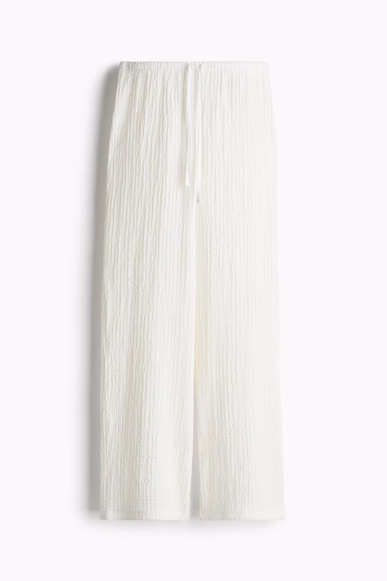 Straight-leg pants in crinkled jersey. Drawstring and covered elastic at waistband.