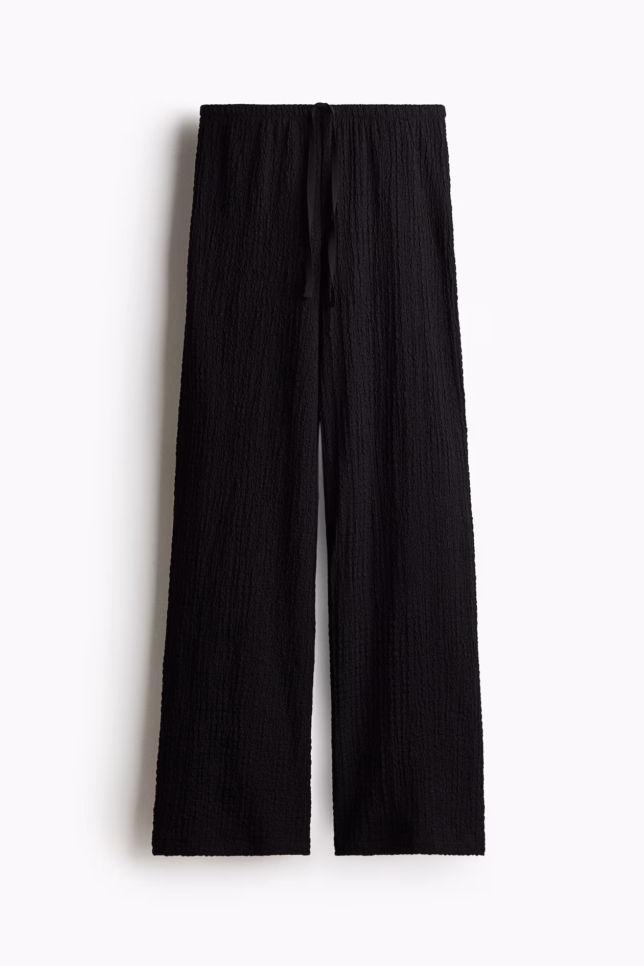 Straight-leg pants in crinkled jersey. Drawstring and covered elastic at waistband.