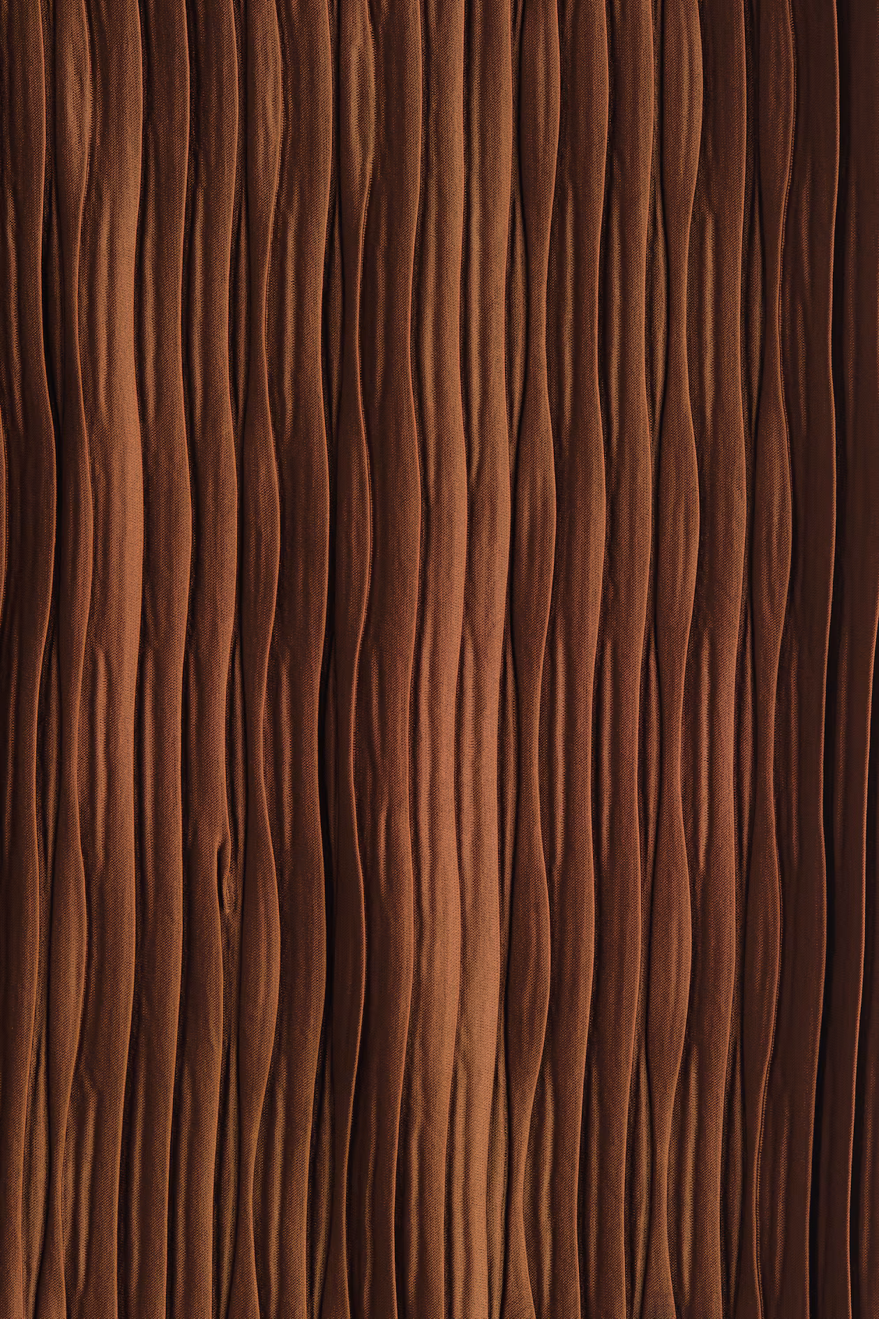 Wide-leg pants in crinkled woven fabric. Covered elastic at waistband, side pockets, and overlocked edge at hems.