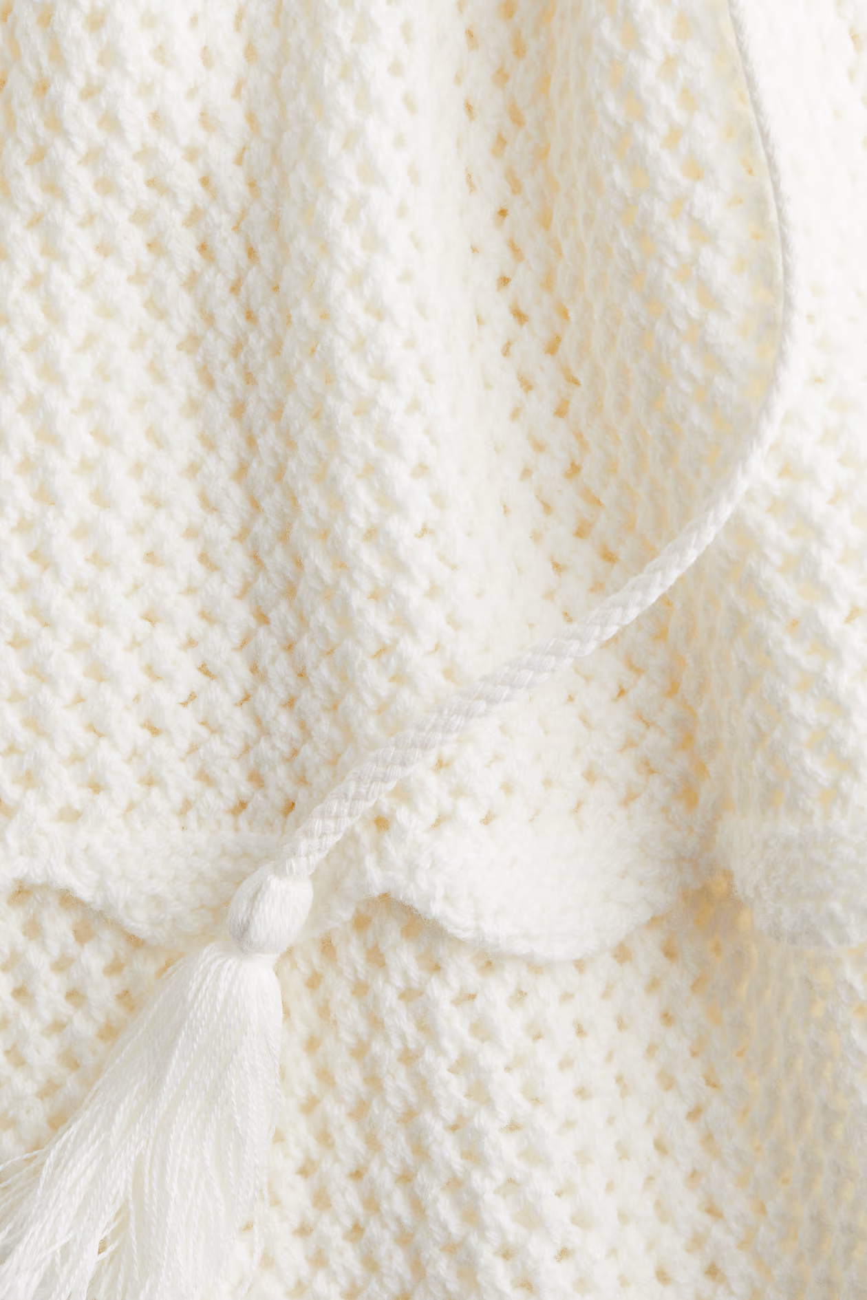 Mini skirt in a crochet-look knit. Drawstring at waistband and scallop-trimmed tiers.