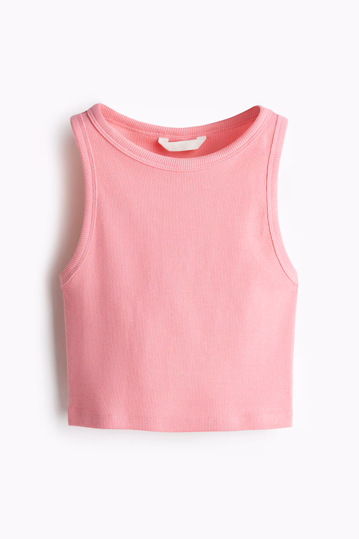 Fitted, cropped tank top in ribbed cotton jersey. Narrow trim at neckline and armholes.