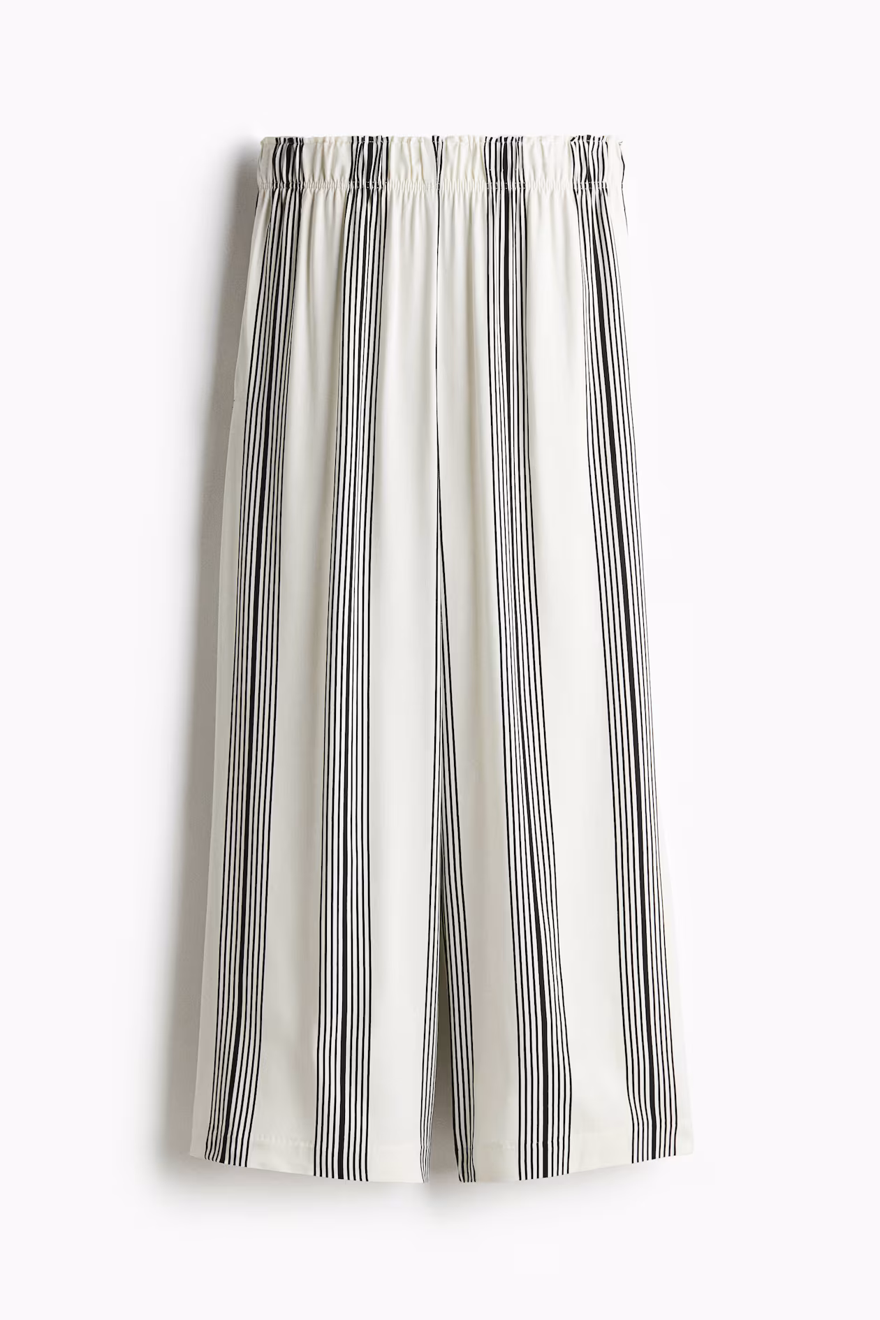 Ankle-length pants in softly draped woven viscose. High waist, covered elastic at waistband, and discreet side-seam pockets. Straight, wide legs.