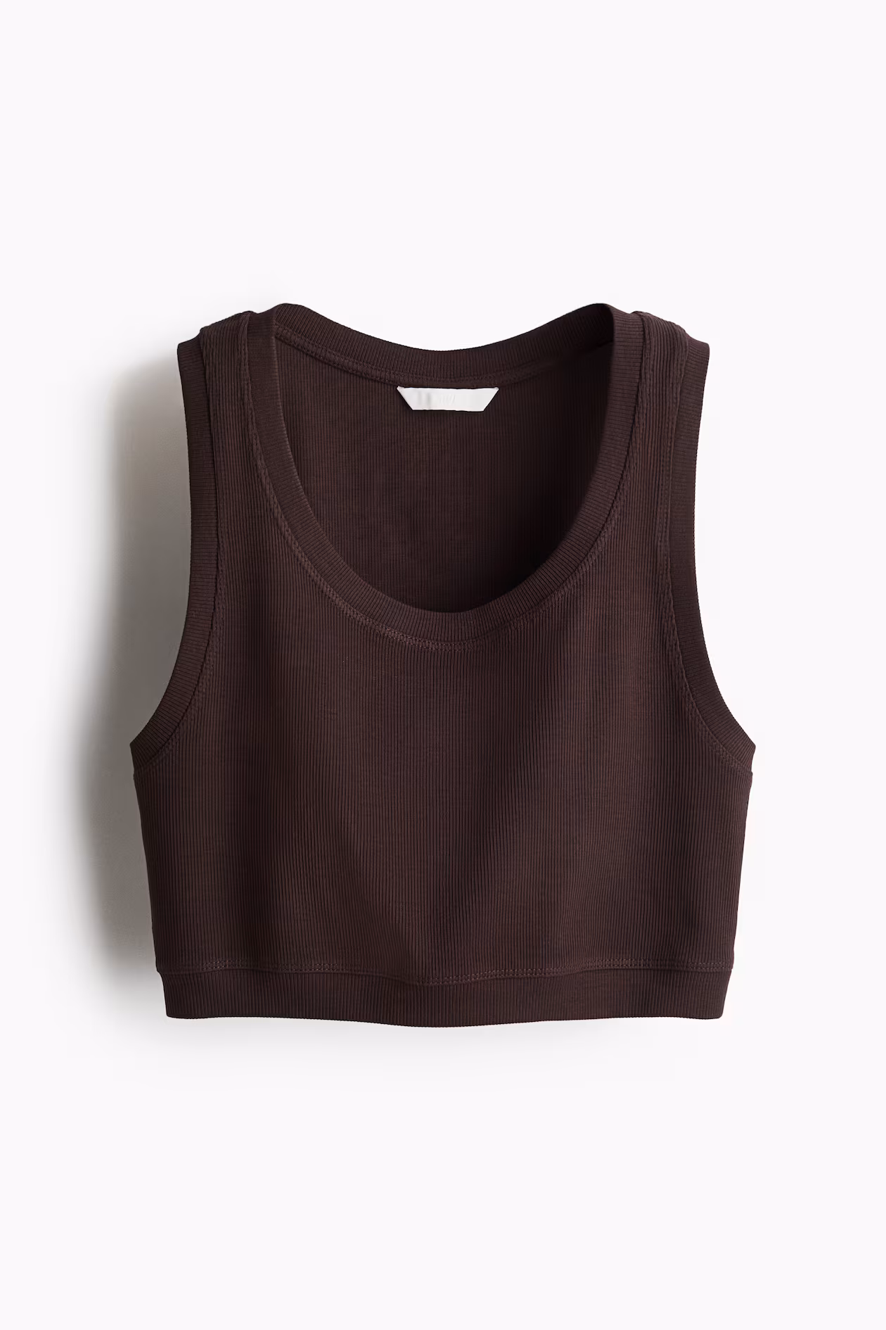 Fitted, cropped tank top in ribbed cotton jersey. Low-cut neckline at front.