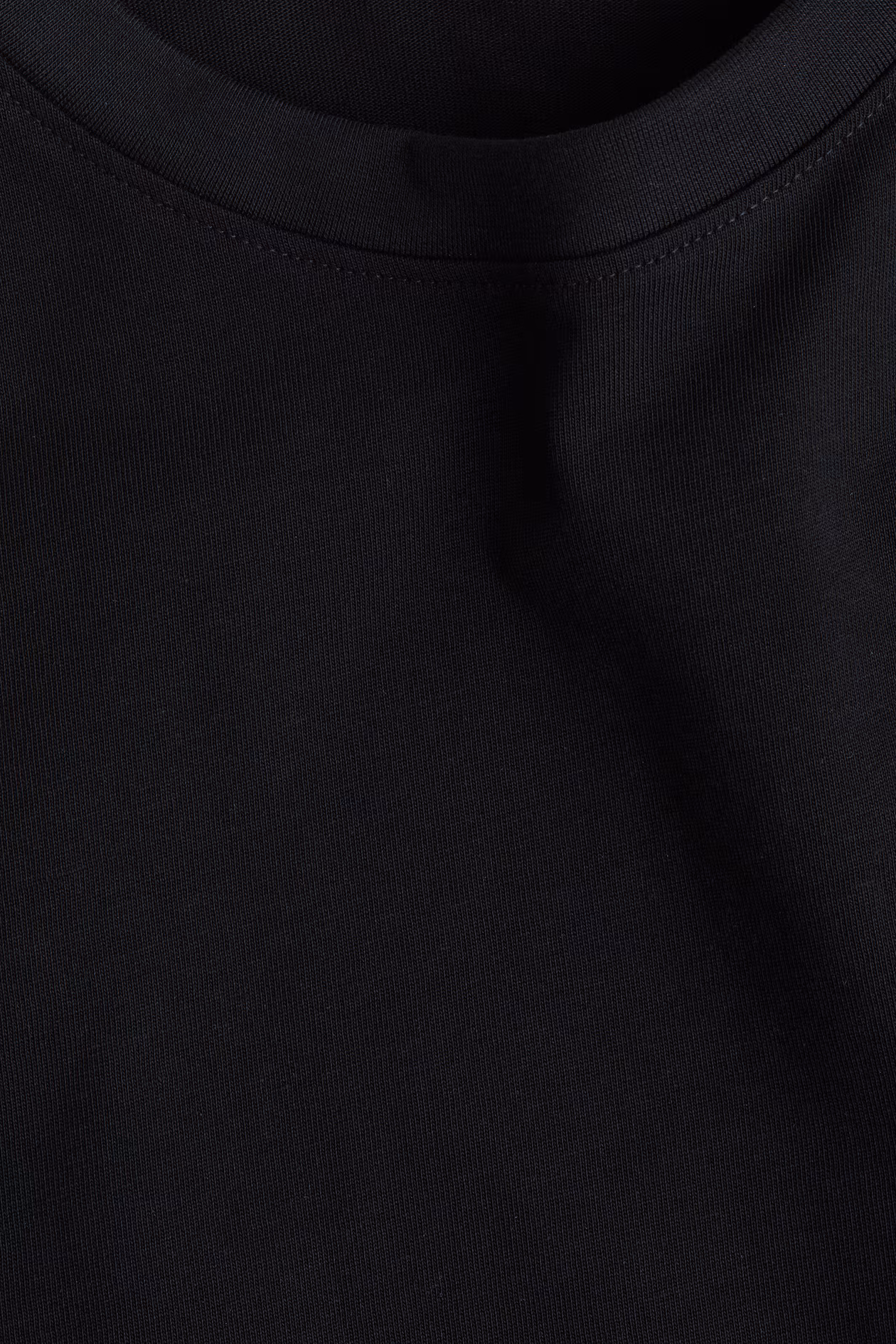 Short dress in soft cotton jersey. Round, ribbed neckline, dropped shoulders, and sleeves finishing just above elbows. Shaping darts at back of waist for a tapered silhouette.