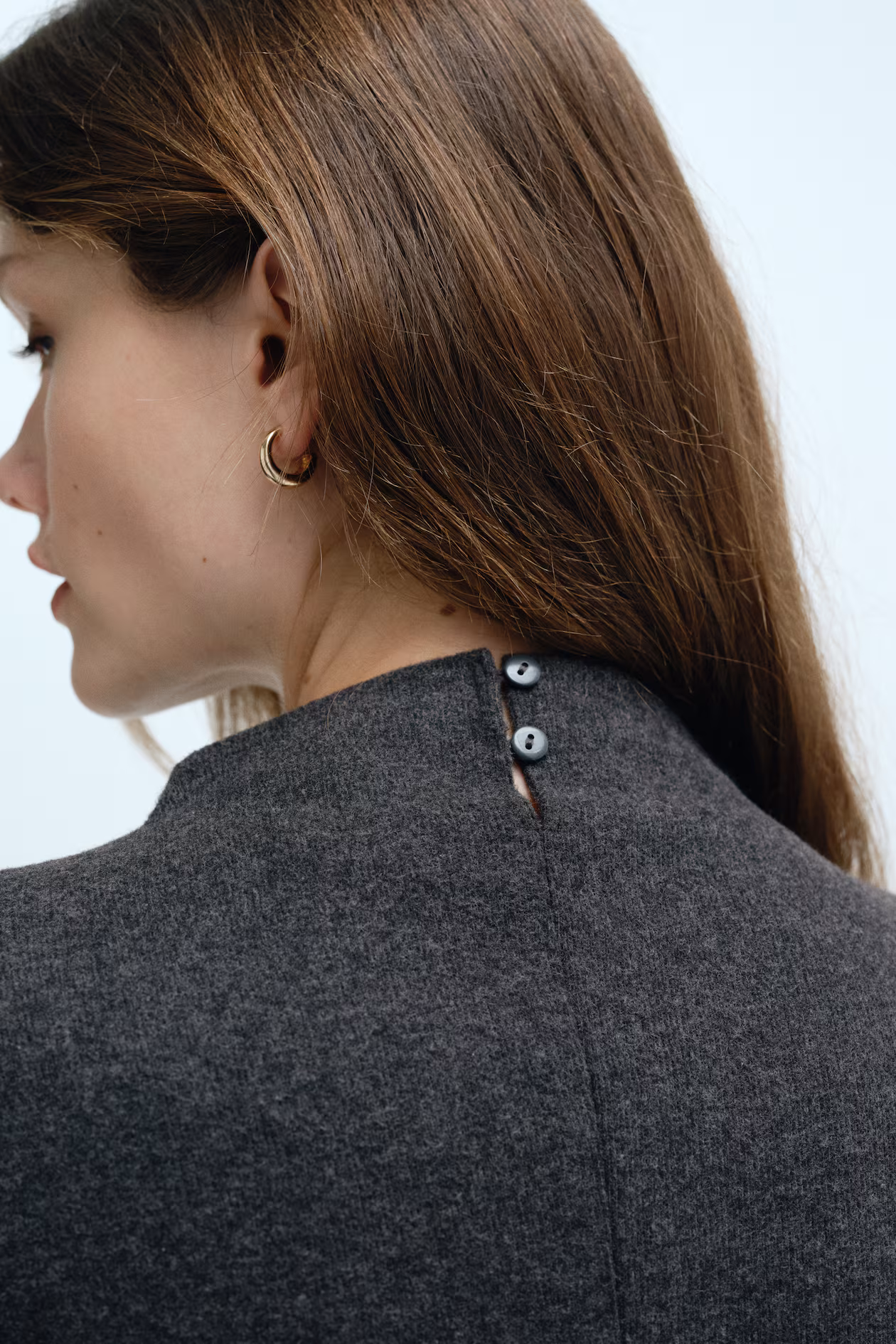 Fitted, long-sleeved top in a fine, gently brushed knit. Mock turtleneck with a keyhole opening and buttons at back. Shaping darts at waist for a tapered silhouette.