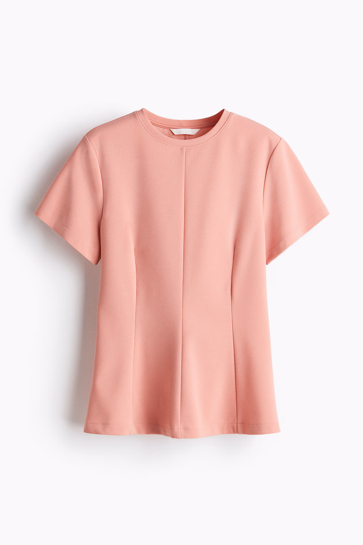 Fitted top in thick interlock jersey. Round neckline, shaping darts at waist, and short sleeves. Flared hem.